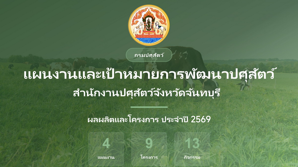 แผนงานและเป้าหมายการพัฒนาปศุสัตว์ 2569