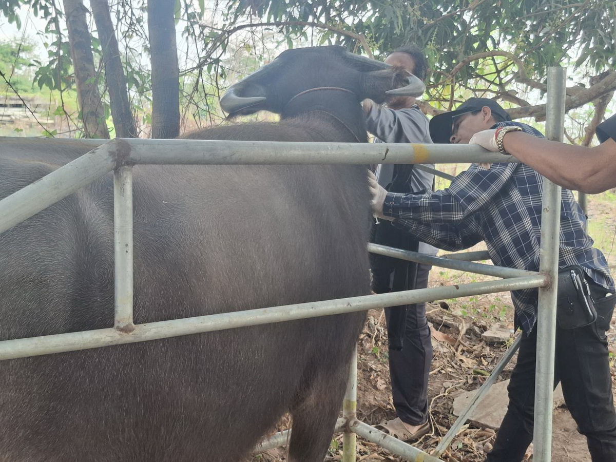 "ปศุสัตว์แก่งหางแมว ดำเนินกิจกรรมสำรวจความชุกและตรวจสอบระดับภูมิคุ้มกันโรคปากและเท้าเปื่อยในกระบือ"