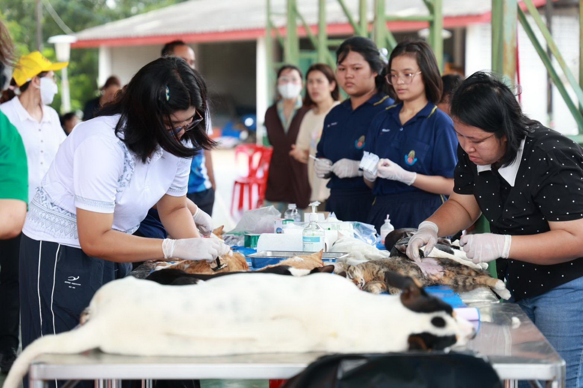 วันที่ 24 มีนาคม 2569 เวลา 08.30 น. นายสมพร พานิชรัมย์ ปศุสัตว์อำเภอแหลมสิงห์รักษาราชการแทนปศุสัตว์อำเภอท่าใหม่ ร่วมกับเทศบาลเมืองท่าใหม่ พร้อมด้วยเจ้าหน้าที่กลุ่มพัฒนาสุขภาพสัตว์ เจ้าหน้าที่ปศุสัตว์อำเภอท่าใหม่ เจ้าหน้าที่ปศุสัตว์อำเภอแก่งหางแมว เจ้าหน้าที่ปศุสัตว์อำเภอเขาคิชกูฏ เจ้าหน้าที่ปศุสัตว์อำเภอเมือง ลงพื้นที่ สวนเฉลิมพระเกียรติพระบาทสมเด็จพระเจ้าอยู่หัวเฉลิมพระชนมพรรษา 80 พรรษา ตำบลท่าใหม่ อำเภอท่าใหม่ จังหวัดจันทบุรี ให้บริการทำหมันสุนัขและแมว จำนวน 93 ตัว เป็นสุนัขเพศเมีย จำนวน 16 ตัว, สุนัขเพศผู้ จำนวน 8 ตัว, แมวเพศเมีย จำนวน 49 ตัว และแมวเพศผู้ จำนวน 20 ตัว พร้อมทั้งให้บริการฉีดวัคซีนป้องกันโรคพิษสุนัขบ้าในสุนัขและแมว รวม 1,100 ตัว