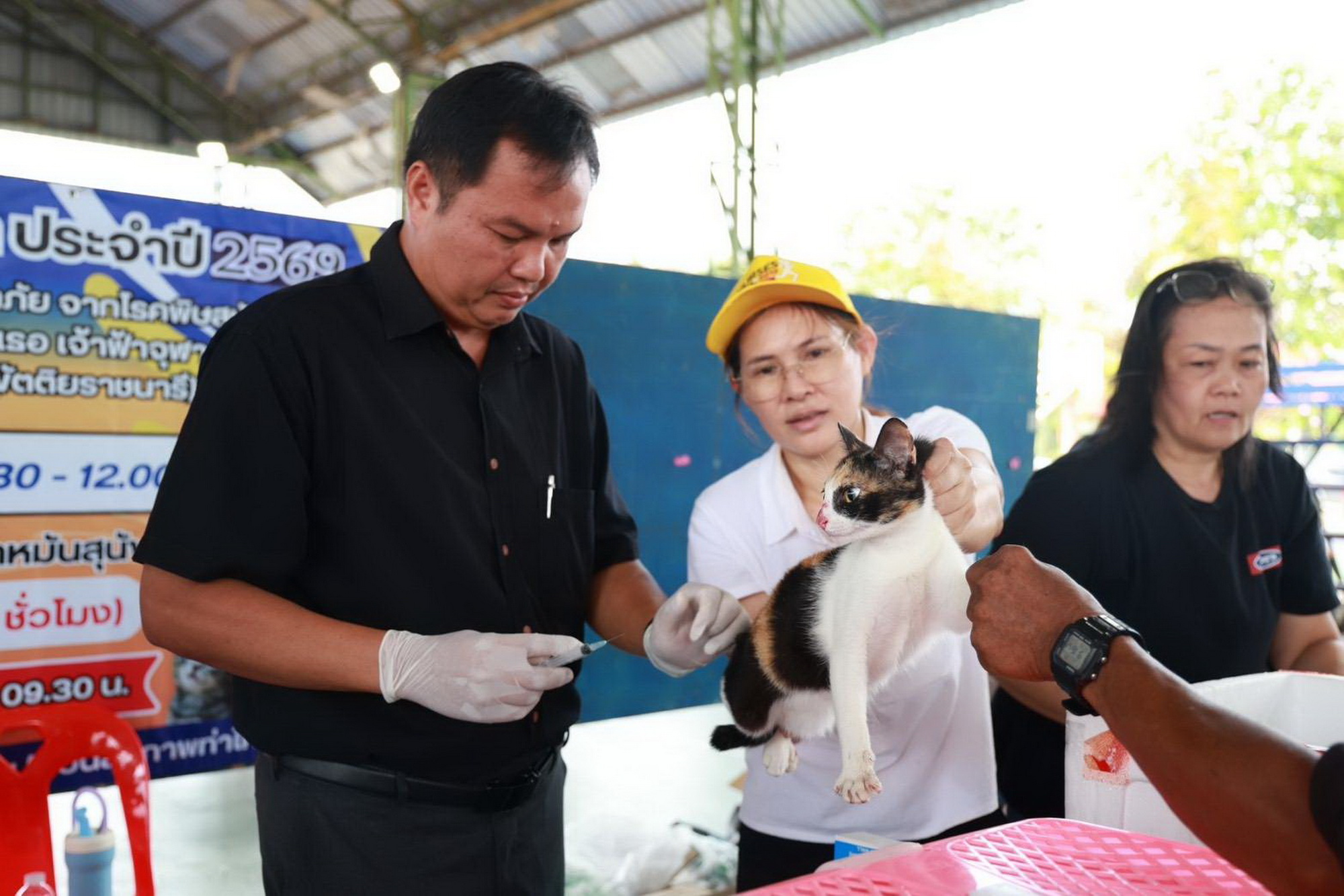 "ปศุสัตว์อำเภอท่าใหม่ ปฏิบัติงานโครงการบวร จันท์ร่วมใจ ขับเคลื่อนตามโครงการสัตว์ปลอดโรค คนปลอดภัยจากโรคพิษสุนัขบ้า"