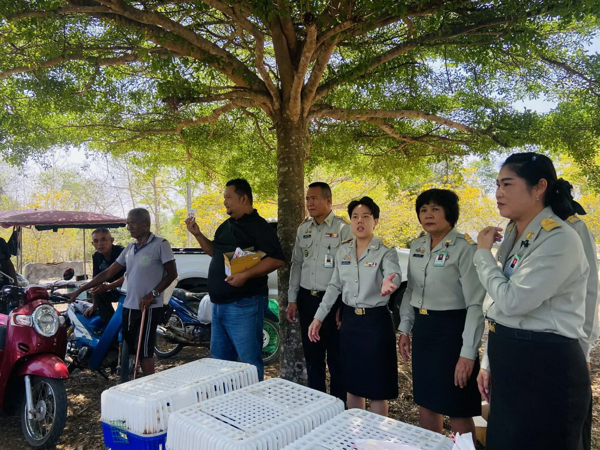 วันที่ 2 เมษายน 2569 สำนักงานปศุสัตว์อำเภอสอยดาว ลงพื้นที่ ร่วมกับงานปศุสัตว์ ศูนย์ศึกษาพัฒนาอ่าวคุ้งกระเบน อันเนื่องมาจากพระราชดำริ มอบพันธุ์ไก่ไข่จำนวน 200 ตัว ในโครงการเลี้ยงสัตว์สาธิตและขยายผล ให้กับสมาชิกเกษตรกร ในองค์การสงเคราะห์ทหารผ่านศึก ตำบลทรายขาว อำเภอสอยดาว จังหวัดจันทบุรี เพื่อส่งเสริมความมั่นคงทางอาหาร ลดรายจ่าย เพิ่มรายได้ โดยการเป็นแหล่งเรียนรู้การเลี้ยงไก่ไข่ที่พึ่งพาตนเองได้ พัฒนาการเลี้ยงแบบปลอดภัย ใช้วัสดุท้องถิ่น และส่งเสริมให้มีแหล่งโปรตีนที่มีคุณภาพ