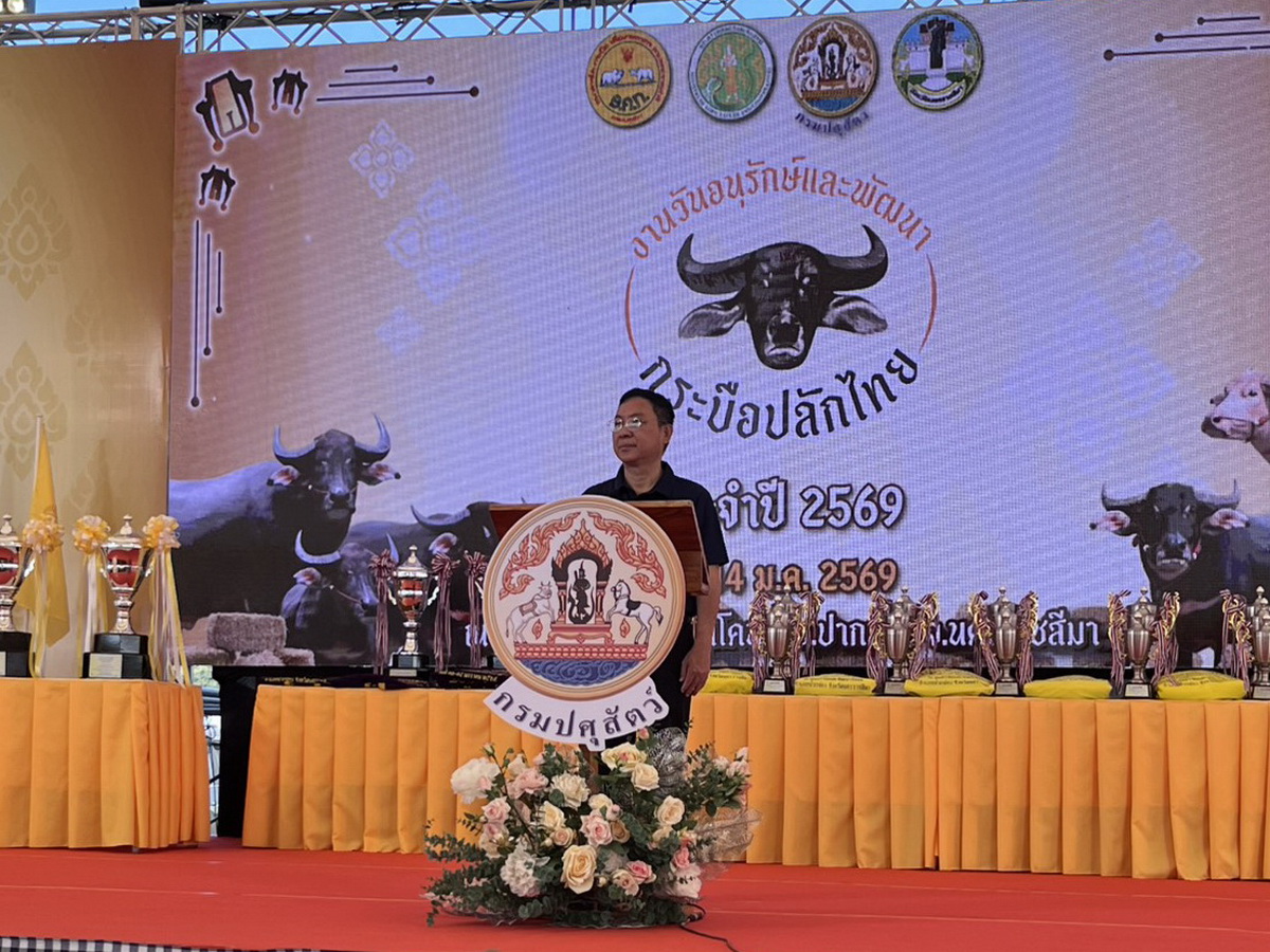 ในวันที่ 13 - 14 มกราคม 2569 น.สพ.ธีร์ พูดเพราะ ปศุสัตว์จังหวัดจันทบุรี พร้อมด้วย นายกำธร โคตรสุวรรณ เจ้าพนักงานสัตวบาลชำนาญงาน กลุ่มงานยุทธศาสตร์และสารสนเทศการปศุสัตว์ เข้าร่วมกิจกรรมงานวันอนุรักษ์และพัฒนากระบือปลักไทยประจำปี พ.ศ. 2569 ณ ศูนย์วิจัยและพัฒนาโคนม อำเภอปากช่อง จังหวัดนครราชสีมา โดยมีกิจกรรมการประกวดกระบือปลักไทย จำนวน 16 รุ่น และขอพระราชทานถ้วยรางวัลพระราชทานกระบือปลักไทยชนะเลิศยอดเยี่ยม Grand Champion และกระบือปลักไทยยอดเยี่ยม ประเภทการใช้ประโยชน์ทางการเกษตร จากพระบาทสมเด็จพระเจ้าอยู่หัว อีกทั้งกิจกรรมสาธิตการใช้ประโยชน์ทางการเกษตร กิจกรรมการแสดงผลิตภัณฑ์และสาธิตการทำผลิตภัณฑ์จากกระบือไทย ซึ่งกิจกรรมวันอนุรักษ์และ พัฒนากระบือปลักไทย ประจำปี พ.ศ. 2569 เป็นการมุ่งเน้นการอนุรักษ์ การคัดเลือกกระบือปลักไทยเพื่อให้เกษตรกรและประชาชนโดยทั่วไปได้ทราบถึงลักษณะประจำพันธุ์ที่ถูกต้อง ตรงตามอัตลักษณ์ของกระบือปลักไทย ที่สามารถนำไปเป็นพ่อ-แม่พันธุ์ที่ดีในอนาคต และเพื่อสร้างความรู้ ความเข้าใจ ให้เกษตรกรและประชาชนโดยทั่วไปสามารถพัฒนาระบบการเลี้ยงกระบือปลักไทย ได้ตรงกับความต้องการของตลาดทำให้เกษตรกรมีรายได้เพิ่มขึ้น สามารถยึดเป็นอาชีพที่ยั่งยืนได้ ทั้งนี้นายมนัส สุวรรณรินทร์ รองผู้ว่าราชการจังหวัดนครราชสีมา และนายสัตวแพทย์สมชวน รัตนมังคลานนท์ พร้อมด้วย คณะผู้บริหารกรมปศุสัตว์ ร่วมเป็นเกียรติในการเปิดงานครั้งนี้