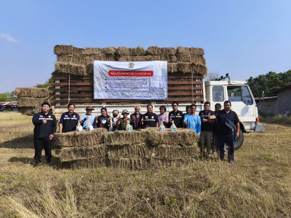 ในวันพฤหัสบดี ที่ 12 กุมภาพันธ์ 2569 เวลา 09.30 น. นายสัตวแพทย์ธีร์ พูดเพราะ ปศุสัตว์จังหวัดจันทบุรี พร้อมด้วยนายสมชาย จันทร์สำราญ เจ้าพนักงานสัตวบาล (ผู้แทนปศุสัตว์อำเภอสอยดาว) นางอนงค์ ธรรมเกษร หัวหน้ากลุ่มยุทธศาสตร์และสารสนเทศการปศุสัตว์ และเจ้าหน้าที่กลุ่มยุทศาสตร์ฯ สำนักงานปศุสัตว์จังหวัดจันทบุรี บูรณาการร่วมกับศูนย์วิจัยและพัฒนาอาหารสัตว์สระแก้ว ได้ดำเนินการส่งมอบเสบียงอาหารสัตว์ (หญ้าแห้ง) ให้กับคลังเสบียงสัตว์ประจำตำบล โดยเป็นหญ้าแพงโกล่าแห้ง จำนวน 250 ฟ่อน หรือ 5,000 กิโลกรัม ณ พื้นที่หมู่ที่ 5 ตำบลทับช้าง อำเภอสอยดาว จังหวัดจันทบุรี โดยคลังเสบียงสัตว์สามารถนำไปใช้แก้ไขปัญหาของเกษตรกร ช่วยเหลือเกษตรกรที่ประสบภัยพิบัติในพื้นที่ และเป็นการแก้ไขปัญหาเฉพาะหน้าได้ในยามขาดแคลนอาหารสัตว์