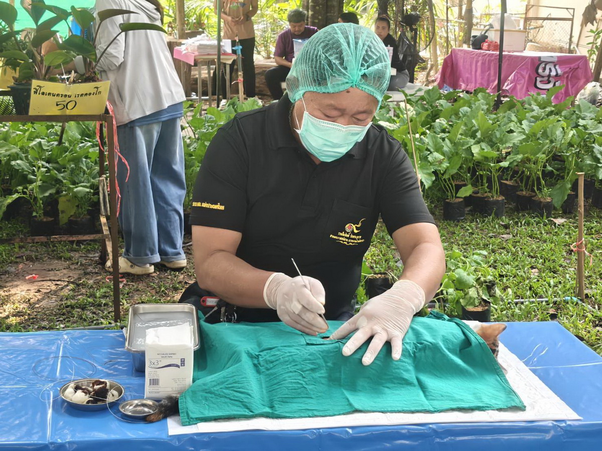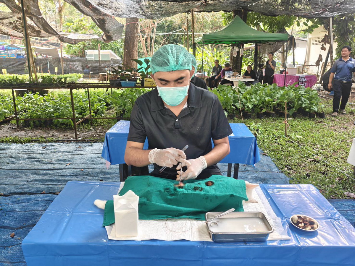 วันที่ 16 กุมภาพันธ์ 2569 เวลา 09.00น. นายสัตวแพทย์ธีร์ พูดเพราะ ปศุสัตว์จังหวัดจันทบุรี นายกำธร โคตรสุวรรณ เจ้าพนักงานสัตวบาลชำนาญงานรักษาราชการแทนปศุสัตว์อำเภอเขาคิชฌกูฏ พร้อมด้วยเจ้าหน้าที่ปศุสัตว์อำเภอเขาคิชฌกูฏ, กลุ่มพัฒนาสุขภาพสัตว์, เจ้าหน้าที่กลุ่มยุทธศาสตร์ฯ, สำนักงานปศุสัตว์อำเภอยายอาม, สำนักงานปศุสัตว์อำเภอแก่งหาง, สำนักงานปศุสัตว์อำเภอเมือง, ปศุสัตว์อำเภอท่าใหม่, เจ้าหน้าที่งานปศุสัตว์ศูนย์ศึกษาการพัฒนาอ่าวคุ้งกระแบนฯ และคณะเทคโนโลยีอุตสาหกรรมการเกษตร(สาขาสัตวศาสตร์) มหาวิทยาลัยเทคโนโลยีราชมงคลตะวันออก วิทยาเขตจันทบุรี ให้บริการเกษตรกรในงานรักษ์เหลืองจันท์ ผลการปฏิบัติงานฉีดวัคซีนป้องกันโรคพิษสุนัขบ้าสุนัข-แมวจำนวน 40 ตัว ผ่าตัดทำหมันสุนัขเพศเมียจำนวน 5 ตัว สุนัขเพศผู้จำนวน 4 ตัว ผ่าตัดทำหมันแมวเพศเมียจำนวน 20 ตัว แมวเพศผู้จำนวน 16 ตัว รวมทั้งหมด 45 ตัว และให้คำแนะนำในการดูแลหลังผ่าตัดทำหมันสุนัขและแมว (ช่วง 10-14 วันแรก) โดยเน้นการจำกัดบริเวณไม่ให้วิ่งกระโดด รักษาแผลให้แห้งสนิท งดอาบน้ำ เพื่อป้องกันแผลฉีกหรือติดเชื้อ ควรสังเกตอาการซึม เบื่ออาหาร หรือความผิดปกติของแผลอย่างใกล้ชิด