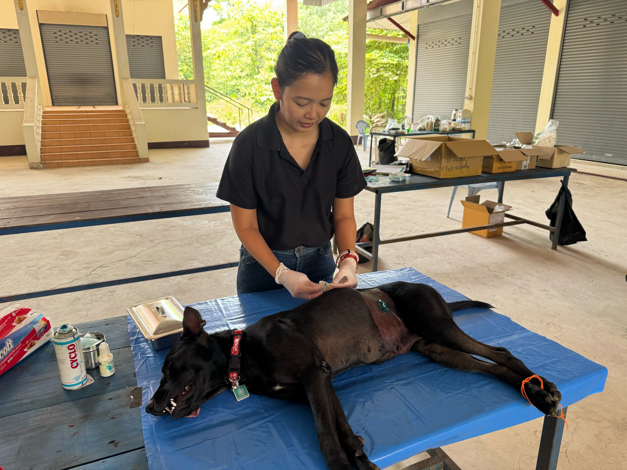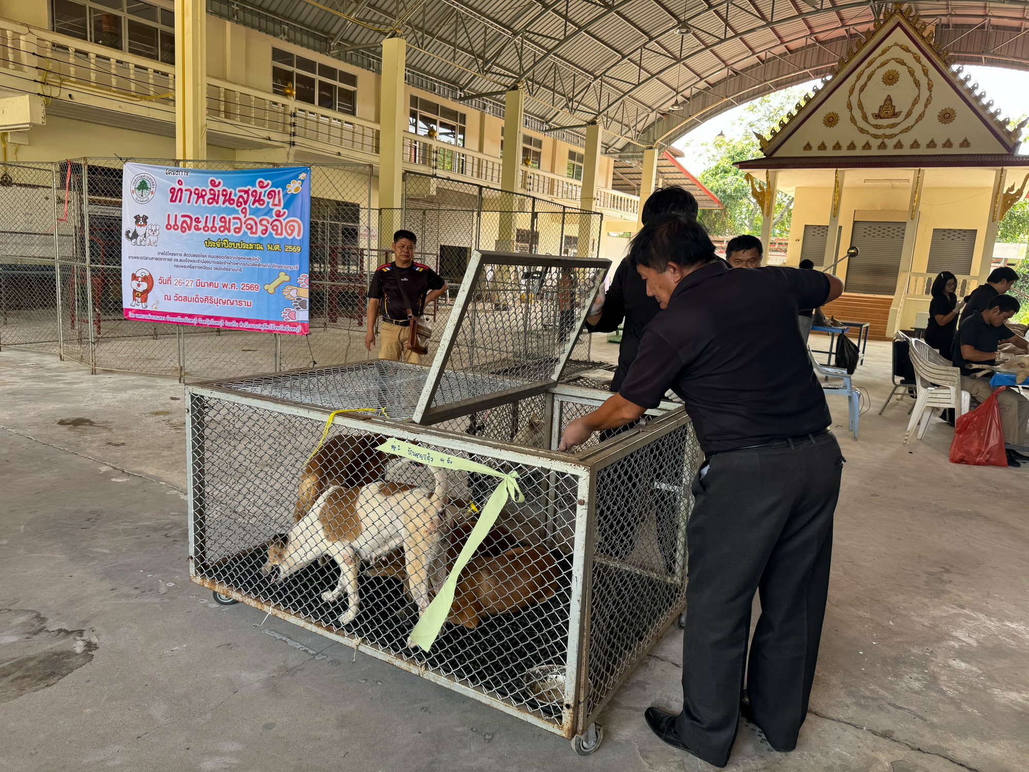 วันที่ 26-27 มีนาคม 2569 เวลา 13:00 น. สพ.ญ.ปิยากร ทองสุข นายสัตวแพทย์ชำนาญการ รักษาราชการแทนปศุสัตว์อำเภอเมืองจันทบุรี บูรณาการร่วมกับเทศบาลตำบลแสลง พร้อมด้วยสพ.ญ.ประภัสสร หยกยิ่งยง นายสัตวแพทย์ชำนาญการ, น.สพ.วสุวัช กะตะศิลา นายสัตวแพทย์ปฏิบัติการ, นายสุนทร บุญมีมาก รักษาราชการแทนปศุสัตว์อำเภอแก่งหางแมว, นายกำธร โคตรสุวรรณ รักษาราชการแทนปศุสัตว์อำเภอเขาคิชฌกูฏ และเจ้าหน้าที่สำนักงานปศุสัตว์อำเภอท่าใหม่ ตามโครงการสัตว์ปลอดโรค คนปลอดภัย จากโรคพิษสุนัขบ้า จัดกิจกรรมผ่าตัดทำหมันและฉีดวัคซีนป้องกันโรคพิษสุนัขบ้าแก่สุนัขจรจัดในเขตพื้นที่เทศบาลตำบลแสลง อำเภอเมืองจันทบุรี จังหวัดจันทบุรี พร้อมมอบอาหารสุนัขให้วัดสมเด็จศิริปุญญาราม โดยทำหมันสุนัข 51 ตัว แมว 4 ตัว รวม 56 ตัว และฉีดวัคซีนป้องกันโรคพิษสุนัขบ้า รวม 58 ตัว ซึ่งเป็นมาตรการควบคุมและป้องกันโรคพิษสุนัขบ้าในพื้นที่ ตลอดจนช่วยลดจำนวนสุนัขจรจัด เพื่อลดความเสี่ยงด้านสาธารณสุข และสร้างความปลอดภัยให้แก่ประชาชนในชุมชน การจัดการประชากรสัตว์อย่างมีประสิทธิภาพ โดยมีเป้าหมายให้พื้นที่เทศบาลตำบลแสลง เป็นพื้นที่ปลอดโรคพิษสุนัขบ้าอย่างยั่งยืน นอกจากนี้ ยังได้รับความร่วมมือจากภาคส่วนท้องถิ่นและประชาชนในพื้นที่เป็นอย่างดี ซึ่งการผ่าตัดทำหมันและการฉีดวัคซีนดังกล่าวจะช่วยลดปัญหาการแพร่ขยายพันธุ์ของสุนัขจรจัด และสร้างความมั่นใจในความปลอดภัยด้านสุขภาพแก่ประชาชนผู้พักอาศัยในชุมชนต่อไป