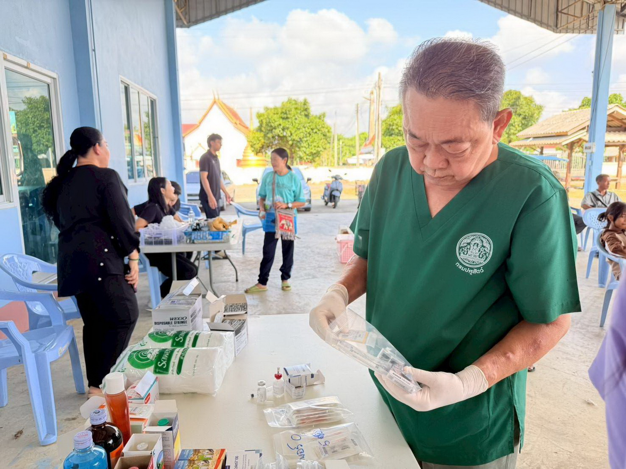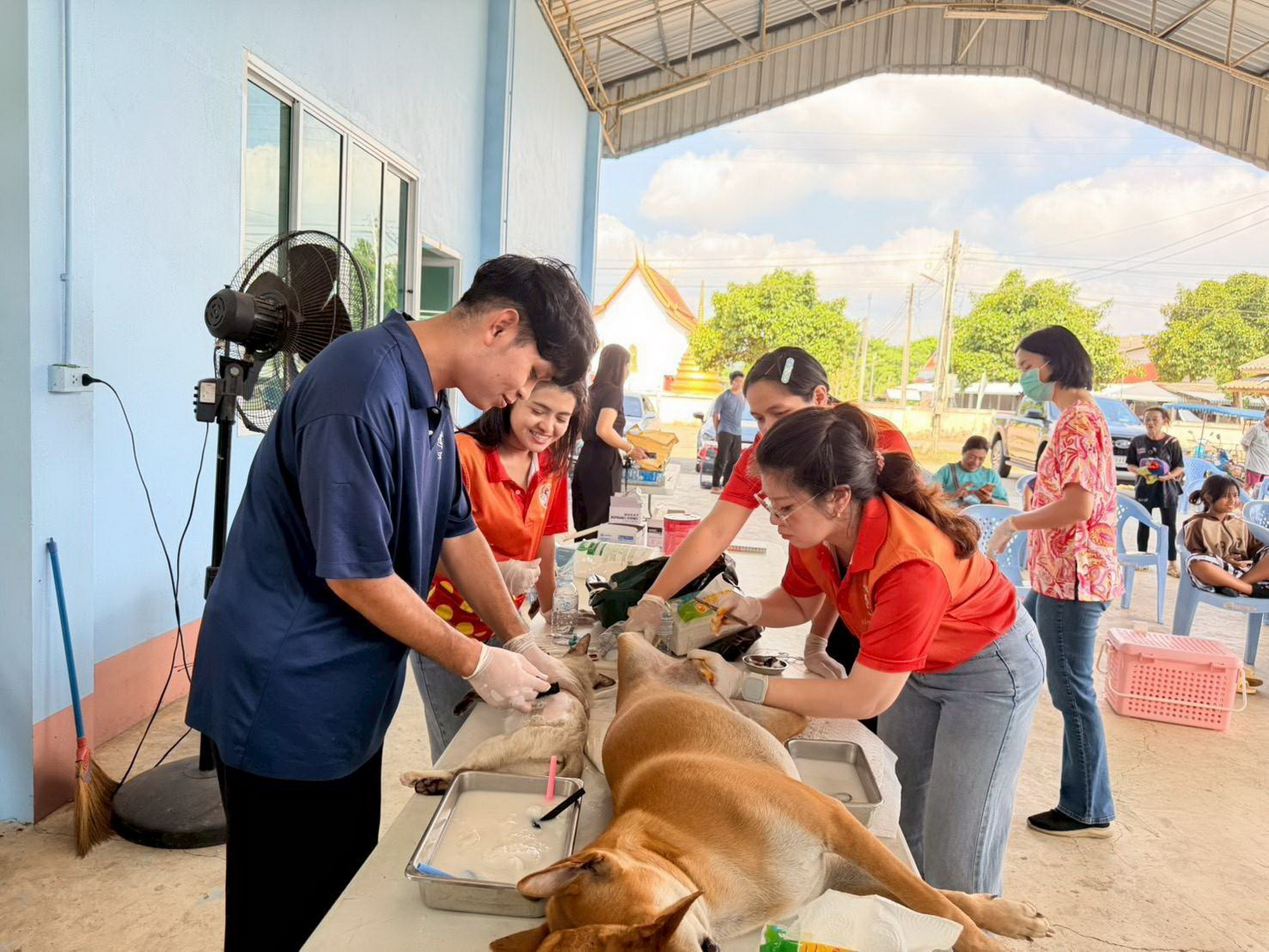 วันที่ 10 เมษายน 2569 เวลา 09:00 น. น.สพ.ประหยัด เข่งค้า ปศุสัตว์จังหวัดจันทบุรี มอบหมายให้สพ.ญ.ประภัสสร หยกยิ่งยง นายสัตวแพทย์ชำนาญการ กลุ่มพัฒนาสุขภาพสัตว์ ร่วมกับเทศบาลตำบลมะขามเมืองใหม่ พร้อมด้วยนายวินัย บุตรดี ปศุสัตว์อำเภอมะขาม, สำนักงานปศุสัตว์อำเภอเมืองจันทบุรี, สำนักงานปศุสัตว์อำเภอแหลมสิงห์ และสำนักงานปศุสัตว์อำเภอขลุง ลงพื้นที่ศาลาประชาคม บ้านท่าหลวงล่าง อำเภอมะขาม จังหวัดจันทบุรี ปฏิบัติงานเชิงรุกโครงการสัตว์ปลอดโรค คนปลอดภัย จากโรคพิษสุนัขบ้า ประจำปีงบประมาณ 2569 ผ่าตัดทำหมัน สุนัขเพศผู้จำนวน 9 ตัว สุนัขเพศเมียจำนวน 5 ตัว แมวเพศผู้ จำนวน 7 ตัว และแมวเพศเมียจำนวน 16ตัว รวมทั้งสิ้น 37 ตัว เพื่อควบคุมประชากรสัตว์สุนัขและแมว ทั้งที่มีเจ้าของและไม่มีเจ้าของ เพื่อลดจำนวนสัตว์จรจัด และประชาสัมพันธ์ให้ประชาชนมีความรู้ ความเข้าใจเรื่อง 5 ย. คาถากันกัด และดูแลสัตว์เลี้ยงอย่างถูกวิธี ไม่ปล่อยสัตว์จรจัด