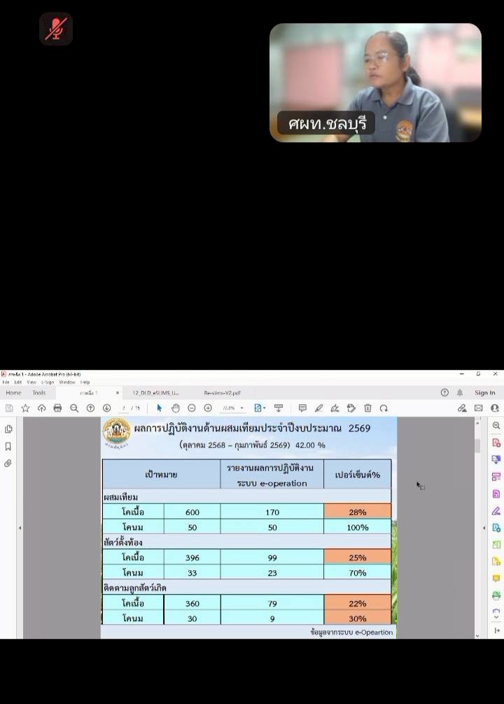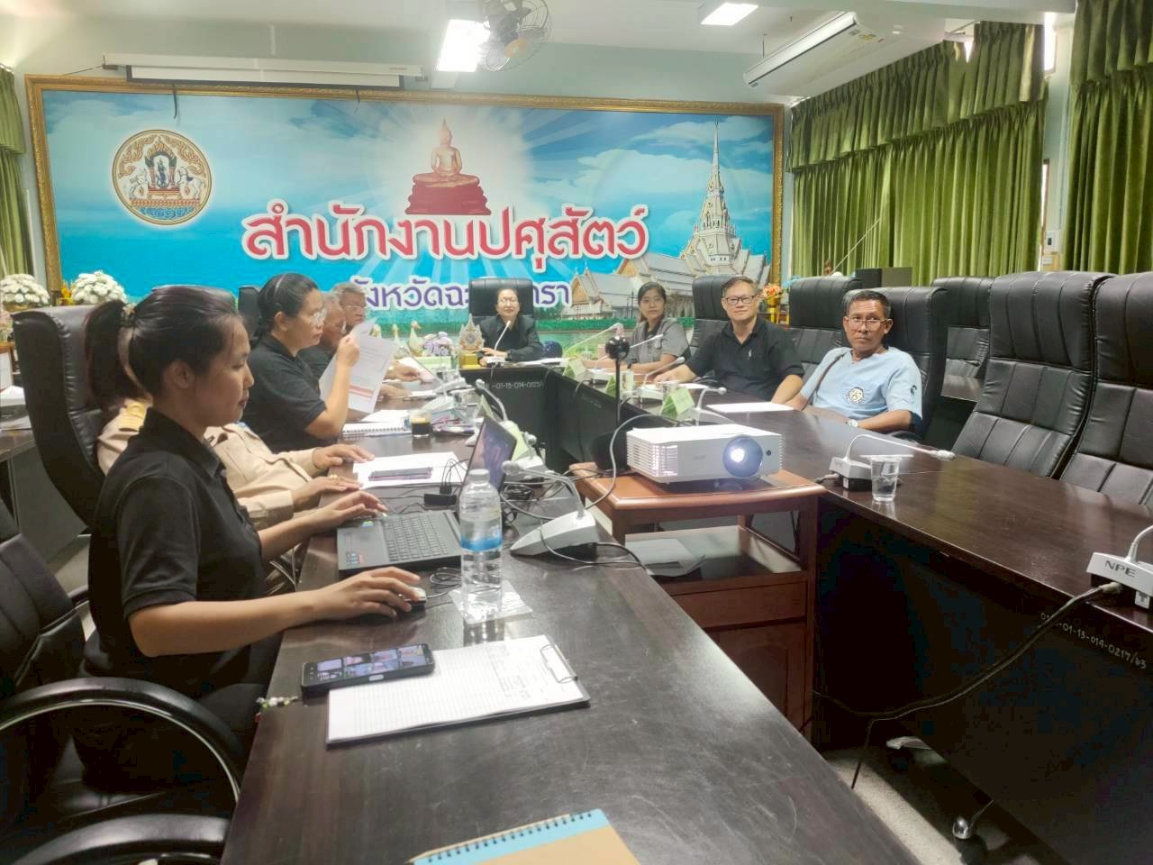วันที่ 9 มีนาคม 2569 นางสาวยุพาพร นักบุญ นายสัตวแพทย์ชำนาญการพิเศษ รักษาราชการแทนปศุสัตว์จังหวัดฉะเชิงเทรา เป็นประธานการประชุมคณะกรรมการและคณะทำงานขับเคลื่อนนโยบายกรมปศุสัตว์ ครั้งที่ 2/2569 ประกอบด้วยหัวหน้ากลุ่ม/ฝ่าย ปศุสัตว์อำเภอ ศูนย์ศึกษาการพัฒนาเขาหินซ้อนฯ ด่านกักกันสัตว์ฉะเชิงเทรา ภาคเอกชน และหน่วยงานในสังกัดกรมปศุสัตว์ ที่มีที่ตั้งนอกจังหวัดฉะเชิงเทรา ร่วมประชุมทางไกลผ่านระบบ Zoom Meeting ซึ่งในการประชุมครั้งนี้เป็นการสรุปผลการปฏิบัติงานตามแผนปฏิบัติการในการขับเคลื่อนนโยบายกรมปศุสัตว์ รอบที่ 1/2569 ณ ห้องประชุมสำนักงานปศุสัตว์จังหวัดฉะเชิงเทรา ตำบลหน้าเมือง อำเภอเมืองฉะเชิงเทรา จังหวัดฉะเชิงเทรา