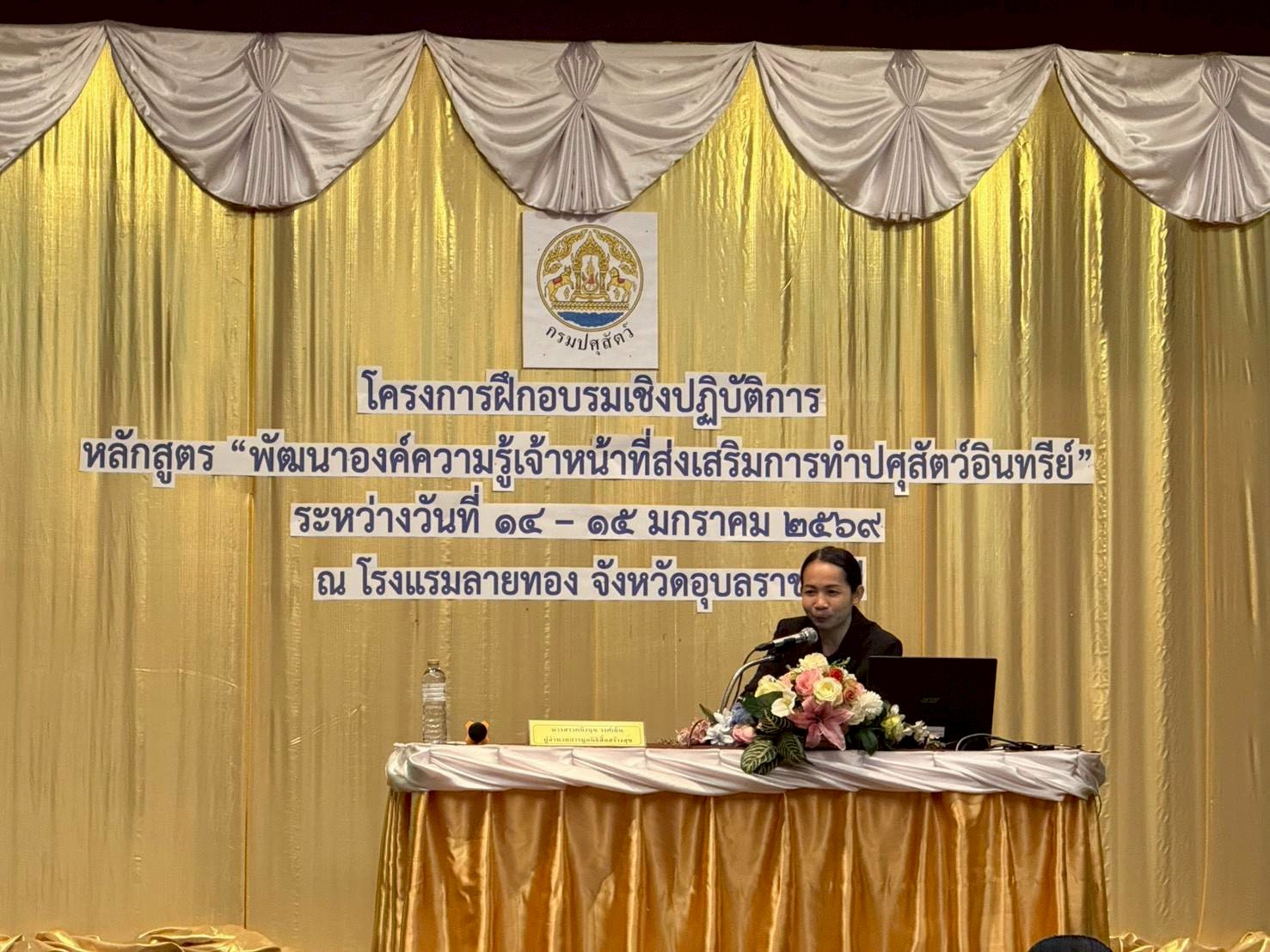 นางสาวยุพาพร นักบุญ นายสัตวแพทย์ชำนาญการพิเศษ รักษาราชการแทนปศุสัตว์จังหวัดฉะเชิงเทรา มอบให้เจ้าหน้าที่กลุ่มส่งเสริมฯ ร่วมฝึกอบรมเชิงปฏิบัติการ หลักสูตร "พัฒนาองค์ความรู้เจ้าหน้าที่ส่งเสริมการทำปศุสัตว์อินทรีย์" ระหว่างวันที่ 14-15 มกราคม 2569 ณ โรงแรมลายทอง อ.เมือง จ.อุบลราชธานี