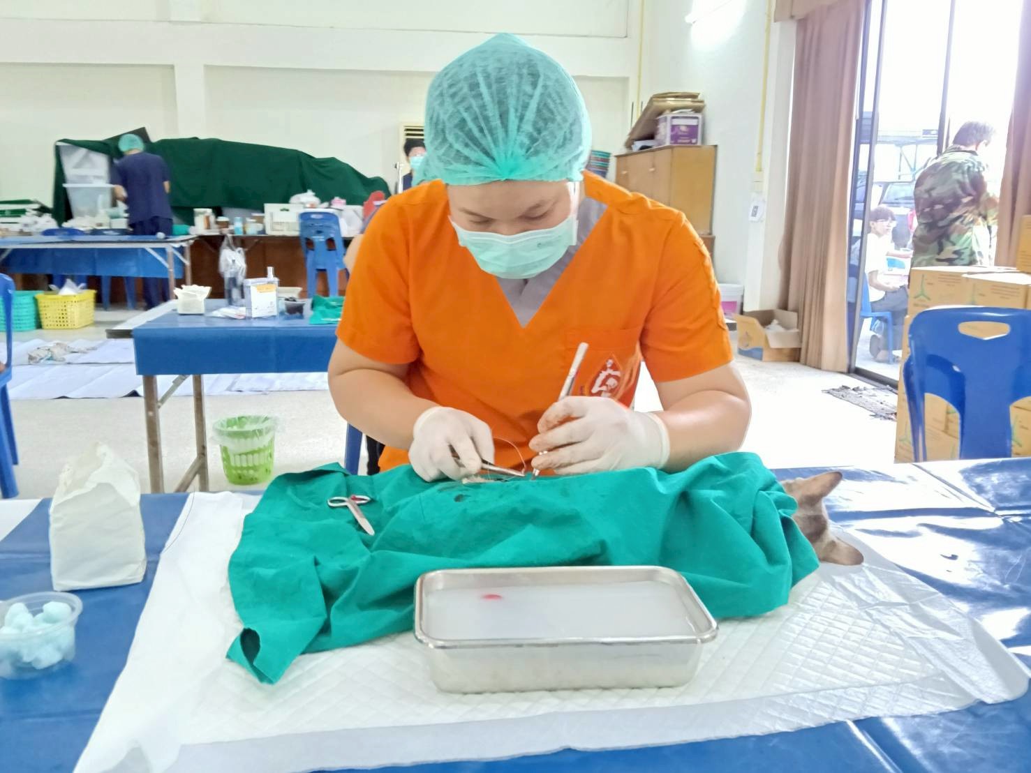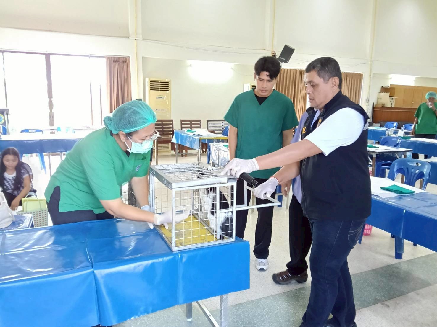 วันที่ 29 เมษายน 2569 นายอำนวย กวมทรัพย์ ปศุสัตว์จังหวัดฉะเชิงเทรา พร้อมด้วยเจ้าหน้าที่สำนักงานปศุสัตว์จังหวัดฉะเชิงเทรา สำนักงานปศุสัตว์อำเภอต่างๆ และด่านกักกันสัตว์ฉะเชิงเทรา บูรณาการร่วมกับองค์การบริหารส่วนตำบลคู้ยายหมี ในการดำเนินการควบคุมป้องกันโรคพิษสุนัขบ้าตามพระปณิธาน ศาสตราจารย์ ดร.สมเด็จเจ้าฟ้ากรมพระศรีสวางควัฒนวรขัตติยราชนารี ปีงบประมาณ 2569 ณ องค์การบริหารส่วนตำบลคู้ยายหมี อำเภอสนามชัยเขต จังหวัดฉะเชิงเทรา ผลดำเนินกิจกรรมมีผู้มารับบริการ จำนวน 61 ราย สัตว์เลี้ยง เข้ารับบริการผ่าตัดทำหมัน รวมทั้งสิ้น 91 ตัว แยกเป็น