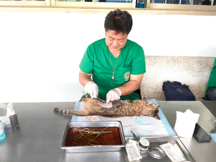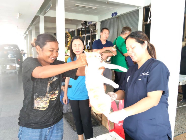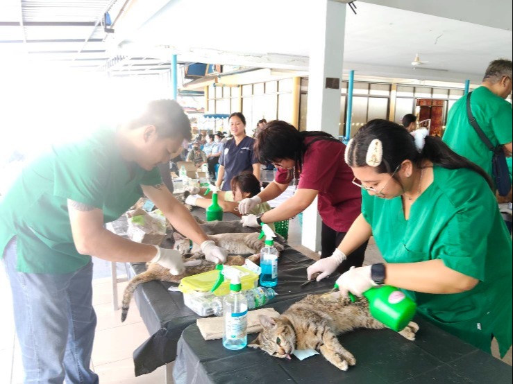 นายชวนะ ทองเย็น ปศุสัตว์จังหวัดชลบุรี มอบหมายให้เจ้าหน้าที่กลุ่มพัฒนาสุขภาพสัตว์ เจ้าหน้าที่สำนักงานปศุสัตว์อำเภอสัตหีบ เจ้าหน้าที่สำนักงานปศุสัตว์อำเภอบางละมุง เจ้าหน้าที่สำนักงานปศุสัตว์อำเภอศรีราชา เจ้าหน้าที่สำนักงานปศุสัตว์อำเภอบ่อทอง เจ้าหน้าที่สำนักงานปศุสัตว์อำเภอเมืองชลบุรี และเจ้าหน้าที่สำนักงานปศุสัตว์อำเภอเกาะสีชัง ร่วมกับเจ้าหน้าที่เทศบาลตำบลเขาชีจรรย์ ดำเนินการผ่าตัดทำหมัน และฉีดวัคซีนป้องกันโรคพิษสุนัขบ้า ในสุนัขและแมว โครงการสัตว์ปลอดโรค คนปลอดภัย จากโรคพิษสุนัขบ้า ประจำปีงบประมาณ 2569 ผลการดำเนินงานดังนี้ ผ่าตัดทำหมันสุนัขเพศผู้ 16 ตัว ผ่าตัดทำหมันสุนัขเพศเมีย 21 ตัว รวม 37 ตัว ผ่าตัดทำหมันแมวเพศผู้ 29 ตัว ผ่าตัดทำหมันแมวเพศเมีย 31 ตัว รวม 60 ตัว รวมผ่าตัดทำหมันสุนัขและแมว จำนวน 97 ตัว ฉีดวัคซีนป้องกันโรคพิษสุนัขบ้า จำนวน 176 ตัว ณ วัดหนองจับเต่า ตำบลนาจอมเทียน อำเภอสัตหีบ จังหวัดชลบุรี วันที่ 5 มีนาคม 2569