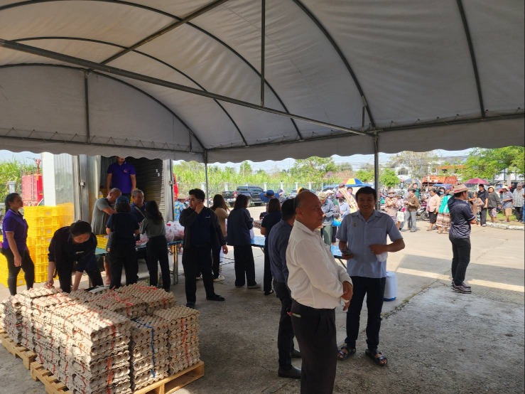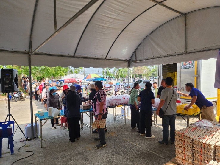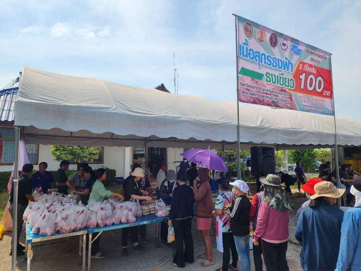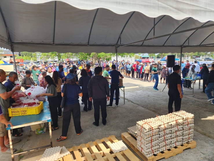 นายชวนะ ทองเย็น ปศุสัตว์จังหวัดชลบุรี พร้อมด้วยรก.หน.กลุ่มยุทธศาสตร์และสารสนเทศการปศุสัตว์ ปศุสัตว์อำเภอพนัสนิคม และเจ้าหน้าที่ ร่วมกับเทศบาลตำบลหมอนนาง กรมการค้าภายใน กระทรวงพาณิชย์ สมาคมผู้เลี้ยงสุกรแห่งชาติ สหกรณ์ผู้เลี้ยงสุกรชลบุรี จำกัดบริษัท ซีพีเอฟ (ประเทศไทย) จำกัด (มหาชน) และหน่วยงานที่เกี่ยวข้อง บูรณาการดำเนินโครงการรักษาเสถียรภาพราคาสุกร โดยการตัดวงจรทำหมูหัน/หมูเนื้อแดง และจัดจำหน่ายเนื้อสุกร “ธงเขียว” ให้แก่ประชาชนในราคายุติธรรม ภายในโครงการมีการจำหน่ายเนื้อสุกรคุณภาพในราคา 2 กิโลกรัม 100 บาท เพื่อช่วยลดภาระค่าครองชีพของประชาชน และเป็นการสร้าง สมดุลด้านราคาในระบบการผลิตปศุสัตว์ ทั้งนี้ การดำเนินงานได้รับความร่วมมือจากสมาคมผู้เลี้ยงสุกรแห่งชาติ และสหกรณ์ผู้เลี้ยงสุกรชลบุรี จำกัด การจัดโครงการดังกล่าวเป็นไปตามนโยบายของภาครัฐในการดูแลค่าครองชีพประชาชน ควบคู่กับการรักษาเสถียรภาพราคาสินค้าปศุสัตว์ และสร้างความมั่นคงให้แก่เกษตรกรผู้เลี้ยงสุกรในพื้นที่อย่างยั่งยืน วันที่ 11 กุมภาพันธ์ 2569