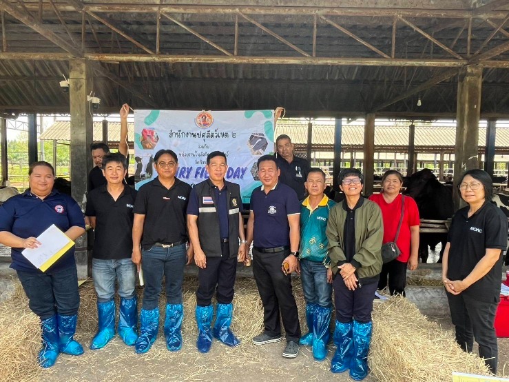 นายชวนะ ทองเย็น ปศุสัตว์จังหวัดชลบุรี มอบหมายให้เจ้าหน้ากลุ่มส่งเสริม และพัฒนาการปศุสัตว์ สำนักงานปศุสัตว์จังหวัดชลบุรี ร่วมกับ เจ้าหน้าที่จากสำนักงานปศุสัตว์เขต2 เจ้าหน้าที่จากศูนย์วิจัยและพัฒนาอาหารสัตว์สระแก้ว และเจ้าหน้าที่จากศูนย์วิจัยการผสมเทียมและเทคโนโลยีชีวภาพชลบุรี เข้าร่วมกิจกรรม Dairy Field Day ครั้งที่ 1/2569 ณ ฟาร์มโคนมของสมาชิกสหกรณ์โคนมบ้านบึง จำกัด ตำบลห้างสูง อำเภอหนองใหญ่ จังหวัดชลบุรี วันที่ 5 มีนาคม 2569
