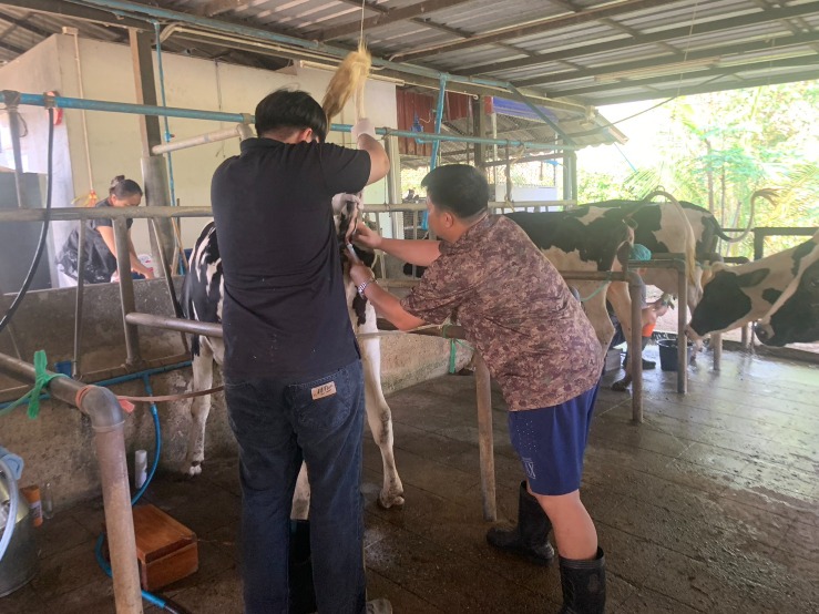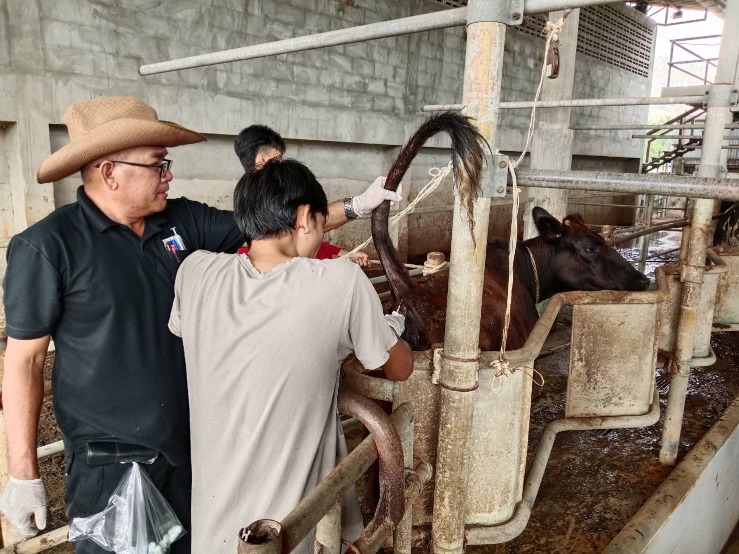 เจ้าหน้าที่สำนักงานปศุสัตว์อำเภอหนองใหญ่ เจ้าหน้าที่ศูนย์ผสมเทียมบ้านบึง ดำเนินการเก็บตัวอย่างซีรั่มจากโคนม 2 แห่ง ของเกษตรกรในพื้นที่ ตำบลหนองใหญ่อำเภอหนองใหญ่ จังหวัดชลบุรี ตามโครงการสำรวจความชุกและตรวจสอบระดับภูมิคุ้มกันโรคปากและเท้าเปื่อย (FMD) ในพื้นที่ภาคตะวันออกของประเทศไทย ประจำปี พ.ศ. 2569 วันที่ 21 มกราคม 2569