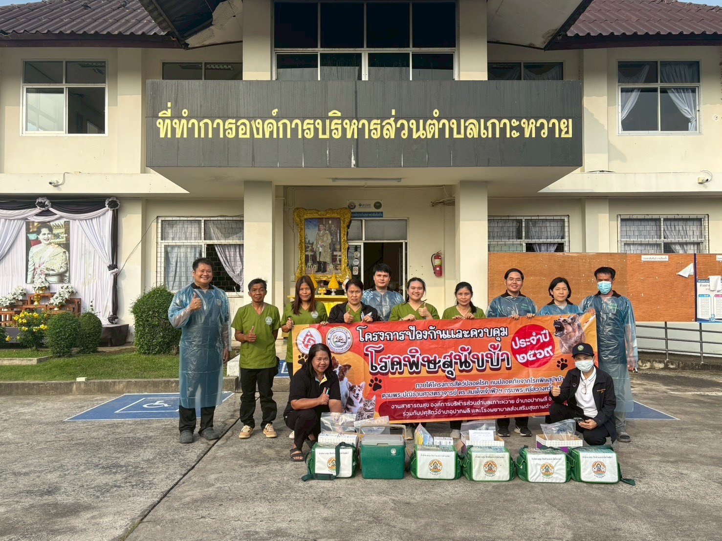 วันที่ 18 กุมภาพันธ์ 2569 นายสาโรช จันทร์ลาด ปศุสัตว์จังหวัดนครนายก มอบหมายให้สำนักงานปศุสัตว์อำเภอปากพลีร่วมกับองค์การบริหารส่วนตำบลเกาะหวาย รณรงค์ฉีดวัคซีนป้องกันโรคพิษสุนัขบ้า ประจำปี 2569 ภายใต้ยุทธศาสตร์แผนการดำเนินโครงการสัตว์ปลอดโรค คนปลอดภัย จากโรคพิษสุนัขบ้า ลงพื้นที่ฉีดวัคซีนป้องกันโรคพิษสุนัขบ้าให้สุนัข แมว ในเขตพื้นที่รับผิดชอบขององค์การบริหารส่วนตำบลเกาะหวาย อำเภอปากพลี หมู่ที่ 1-6 รวม 6 หมู่บ้าน โดยดำเนินการฝึกอบรมถ่ายทอดความรู้เกี่ยวกับโรคพิษสุนัขบ้า วิธีการจับและบังคับสุนัข และแมวรวมทั้งการฉีดวัคซีนป้องกันโรคพิษสุนัขบ้า อย่างถูกวิธีให้ สุนัข 289 ตัว แมว 295 ตัว รวม 584 ตัว