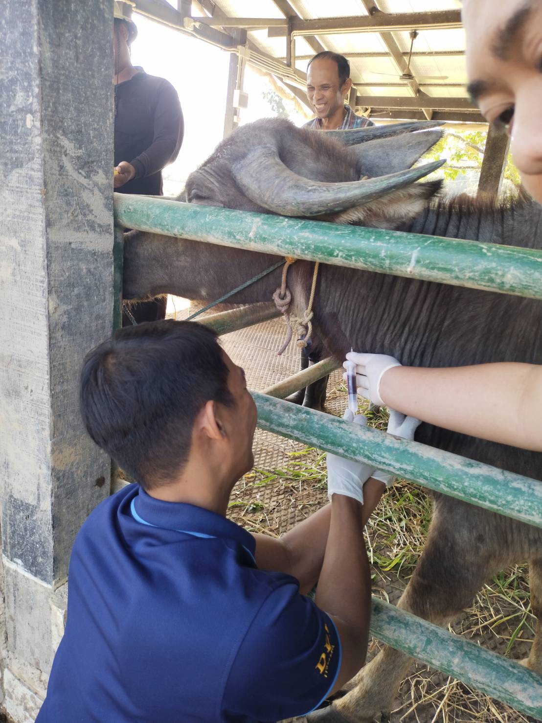 วันที่ 11 กุมภาพันธ์ 2569 นายสาโรช จันทร์ลาด ปศุสัตว์จังหวัดนครนายก มอบหมายให้สำนักงานปศุสัตว์อำเภอเมืองนครนายก ดำเนินการเก็บตัวอย่างซีรั่ม เพื่อสำรวจความชุกและตรวจสอบระดับภูมิคุ้มกันโรคปากและเท้าเปื่อย (FMD) ในกระบือ ที่ได้รับการฉีดวัคซีนป้องกันโรคปากและเท้าเปื่อย (FMD) เกษตรกรจำนวน 4 ราย กระบือ จำนวน 36 ตัว ในพื้นที่อำเภอเมืองนครนายก พร้อมทั้งให้ความรู้เกี่ยวกับโรคปากและเท้าเปื่อย ให้กับเกษตรกร