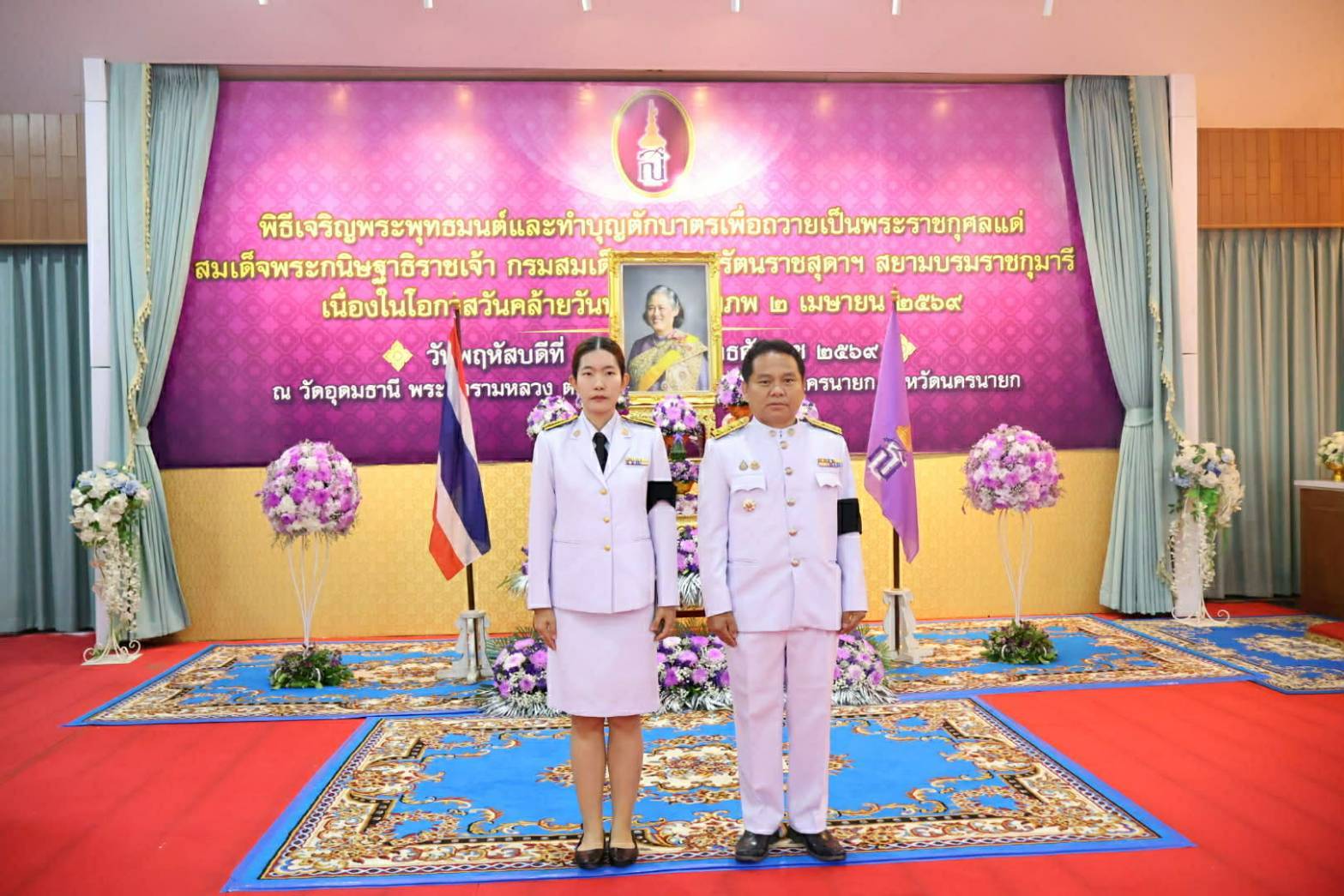 วันที่ 2 เมษายน 2569 นายบุญกัน เขตแวงควง นายสัตวแพทย์ชำนาญการพิเศษ รักษาราชการแทนปศุสัตว์จังหวัดนครนายก พร้อมด้วยเจ้าหน้าที่กลุ่มส่งเสริมและพัฒนาการปศุสัตว์ เข้าร่วมพิธีเจริญพระพุทธมนต์และทำบุญตักบาตรเพื่อถวายเป็นพระราชกุศลแด่ สมเด็จพระกนิษฐาธิราชเจ้า กรมสมเด็จพระเทพรัตนราชสุดาฯ สยามบรมราชกุมารี เนื่องในโอกาสวันคล้ายวันพระราชสมภพ 2 เมษายน 2569 และพิธีปล่อยพันธุ์สัตว์น้ำเฉลิมพระเกียรติฯ โดยมีนายชานนท์ วาสิกศิริ ผู้ว่าราชการจังหวัดนครนายก เป็นประธานในพิธี ณ วัดอุดมธานี พระอารามหลวง อำเภอเมืองนครนายก จังหวัดนครนายก