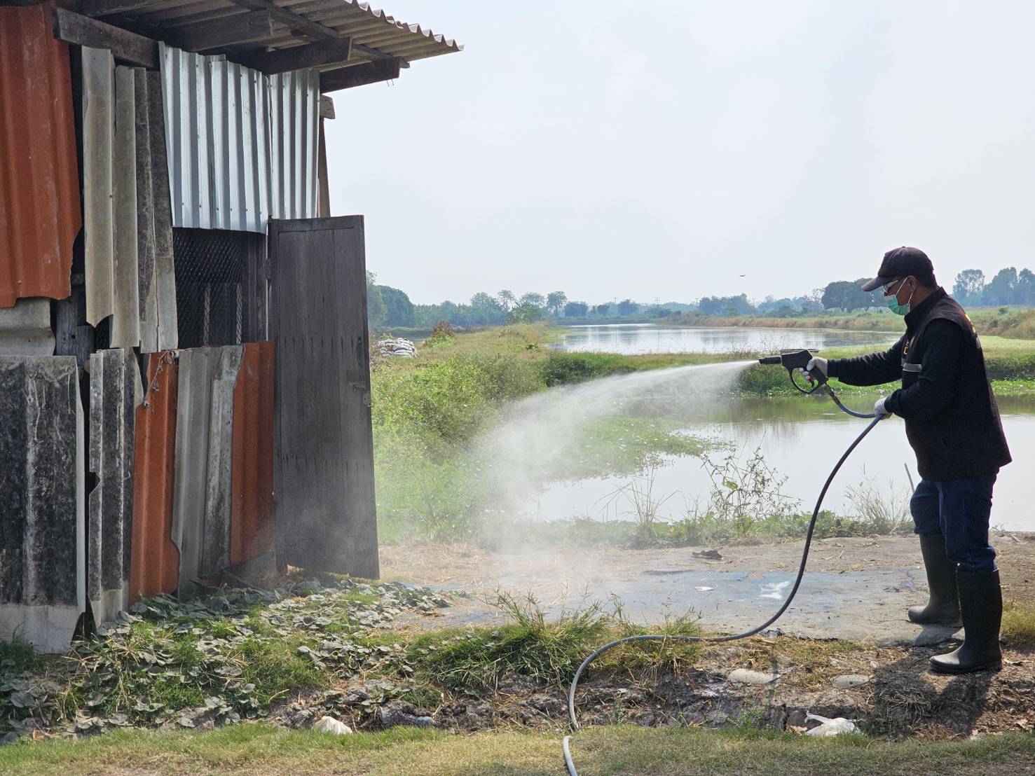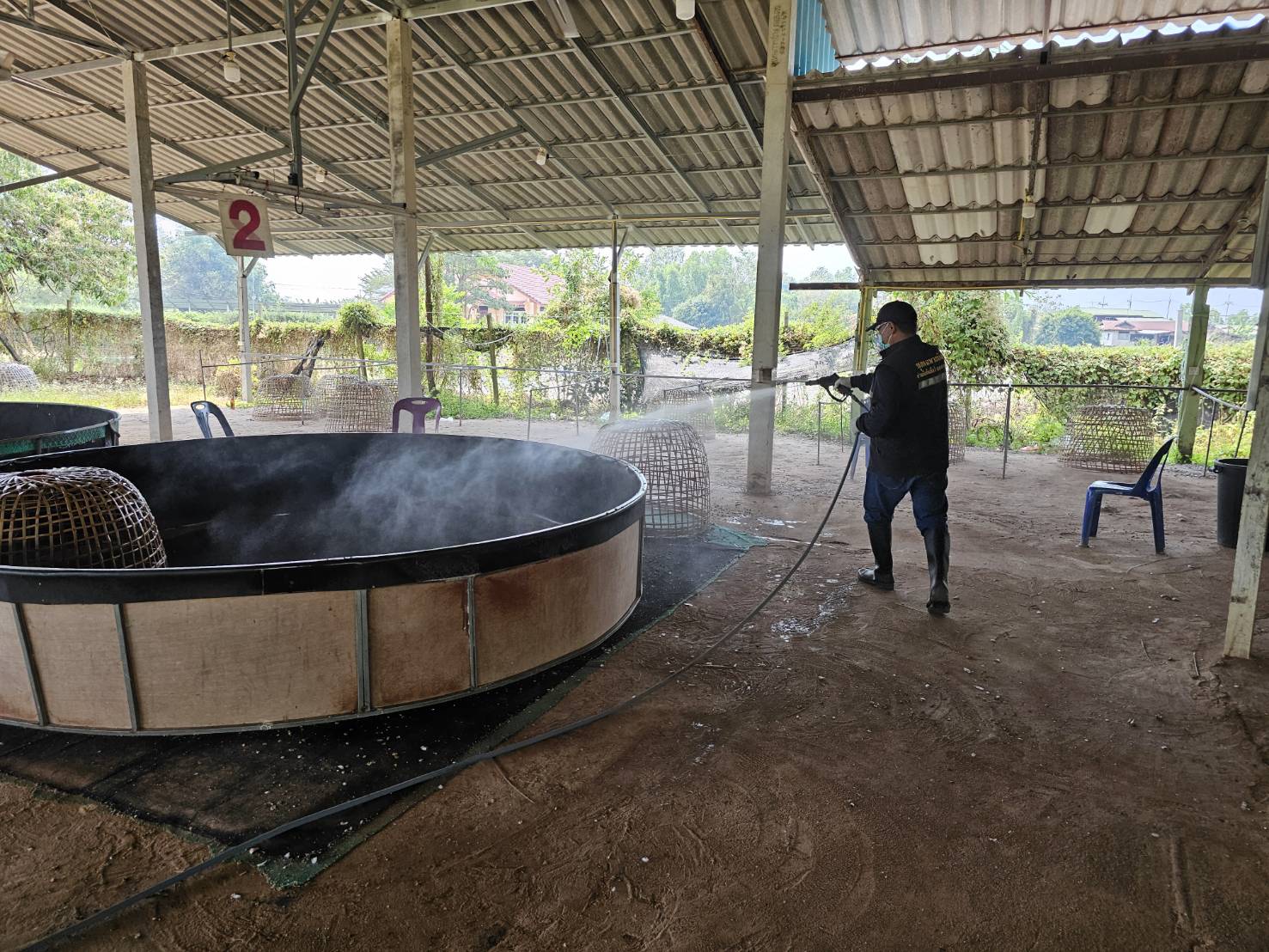 วันที่ 21 มกราคม 2569 นายสาโรช จันทร์ลาด มอบหมายให้สำนักงานปศุสัตว์อำเภอเมืองนครนายก ร่วมกับด่านกักกันสัตว์จังหวัดนครนายก ดำเนินการฉีดพ่นยาฆ่าเชื้อโรคไข้หวัดนกตามโครงการรณรงค์ทำความสะอาดและทำลายเชื้อโรคไข้หวัดนกในพื้นที่เสี่ยง ครั้งที่ 2/2569 ผลการปฎิบัติงานในพื้นที่อำเภอเมืองนครนายก โรงฆ่าสัตว์ปีกจำนวน 2 แห่ง สนามซ้อมชนไก่จำนวน 6 แห่ง และสนามชนไก่จำนวน 1 แห่ง
