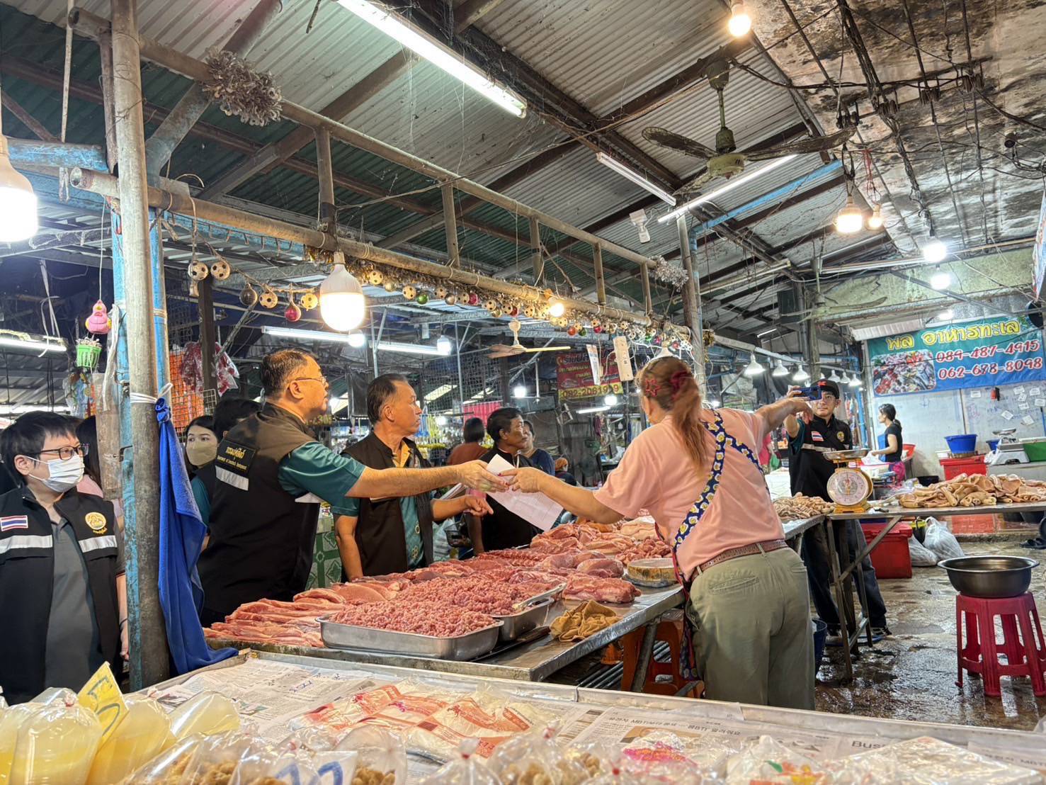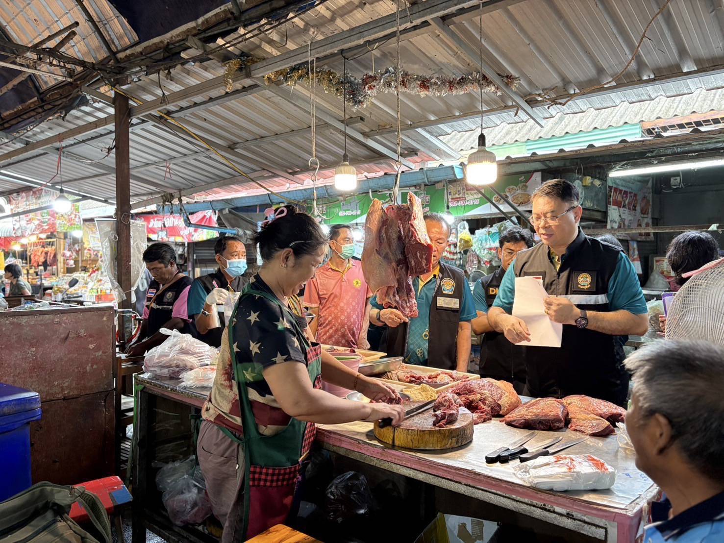นายสัตวแพทย์สุขุม สนธิพันธ์ ปศุสัตว์จังหวัดปราจีนบุรี นำชุดเฉพาะกิจดำเนินการโครงการแก้ไขปัญหาการใช้สารเร่งเนื้อแดงในภาคปศุสัตว์ออกสุ่มตรวจเขียงขายเนื้อโคและเนื้อสุกร ณ ตลาดหน้าค่ายจักรพงษ์ภูวนารถประกอบด้วยคณะเจ้าหน้าที่จากสำนักงานสาธารณสุขจังหวัดปราจีนบุรี สำนักงานเทศบาลเมืองปราจีนบุรีสำนักงานปศุสัตว์เขต 2