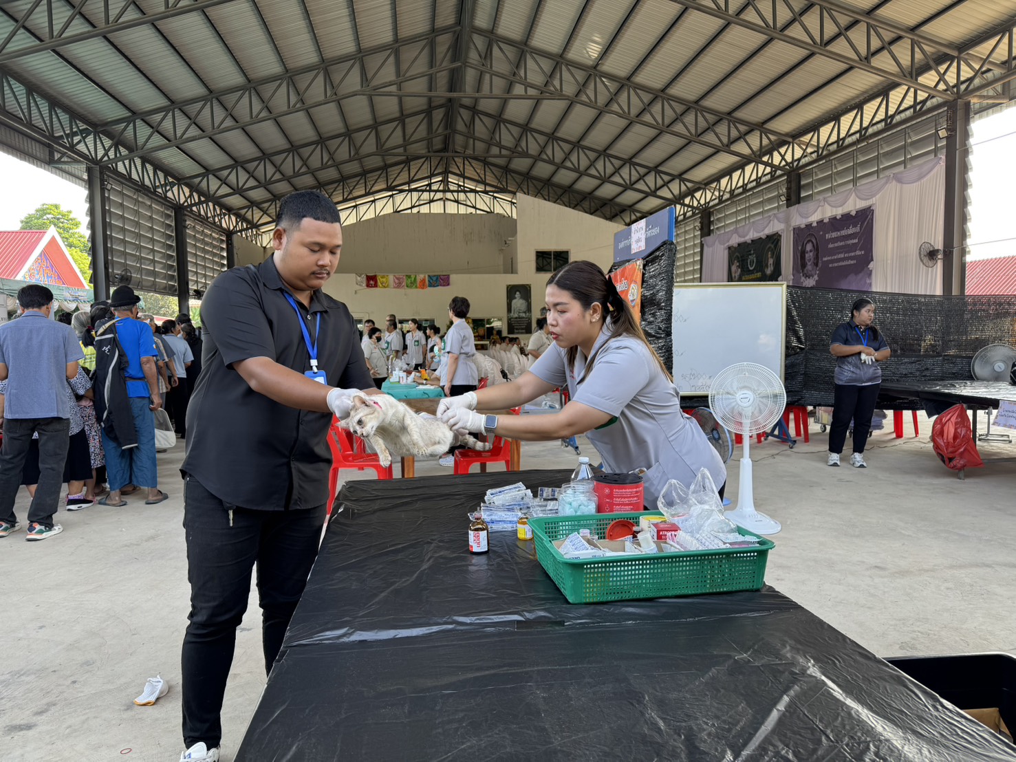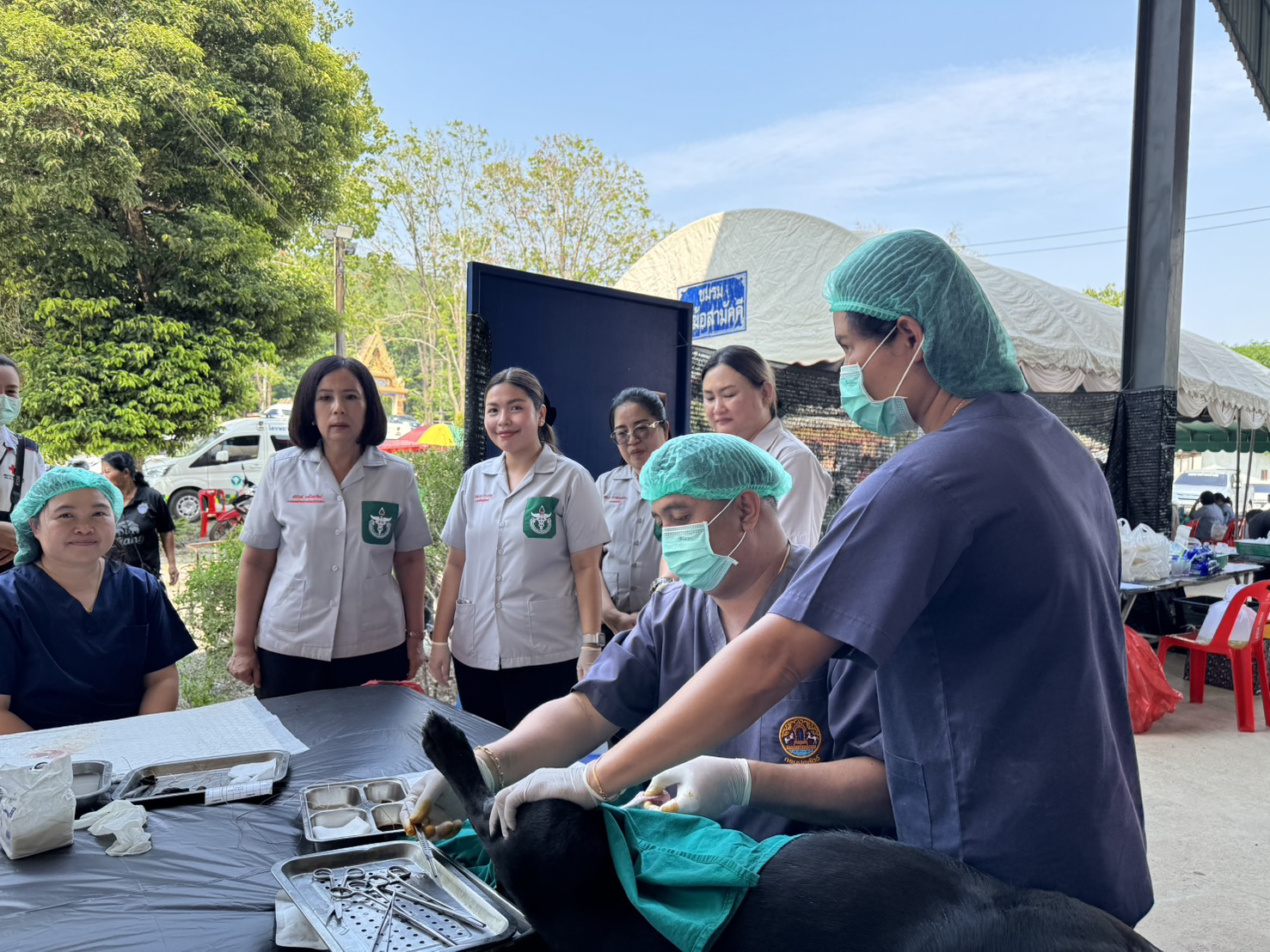 3.บริการผ่าตัดทำหมันสุนัข-แมว ภายใต้โครงการ “สัตว์ปลอดโรค คนปลอดภัยจากโรคพิษสุนัขบ้า ตามพระปณิธานศาสตราจารย์ ดร. สมเด็จเจ้าฟ้าฯ กรมพระศรีสวางควัฒน วรขัตติยราชนารี” รวม 30 ตัว แบ่งเป็นการทำหมันสุนัขเพศเมียจำนวน 11 ตัว สุนัขเพศผู้จำนวน 6 ตัว แมวเพศเมียจำนวน 9 ตัว แมวเพศผู้ จำนวน 4 ตัว ทั้งนี้มีประชาชนในพื้นที่เข้ารับบริการด้านปศุสัตว์ จำนวน 18 ราย