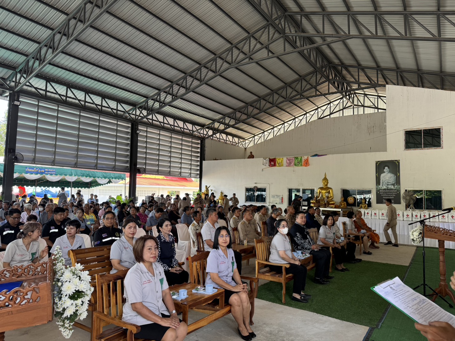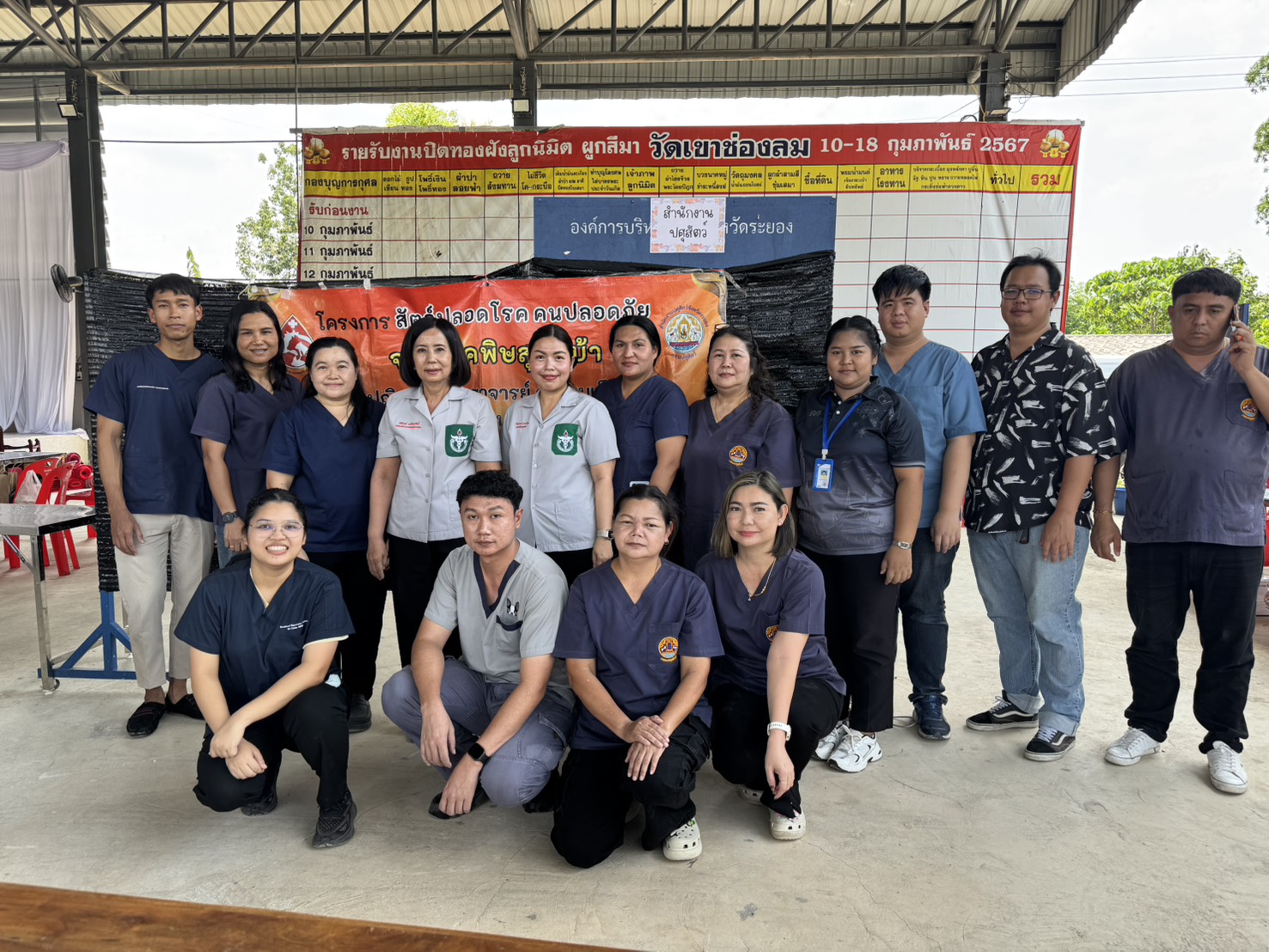 วันที่ 13 มีนาคม 2569 เวลา 08.30 น. นายสัตวแพทย์ไทยวิวัฒน์ วรรณสุข ปศุสัตว์จังหวัดระยอง มอบหมายให้ สพ.ญ.ณัฐนันท์ ประเสริฐ นายสัตวแพทย์ชำนาญการพิเศษ หัวหน้ากลุ่มพัฒนาสุขภาพสัตว์, เจ้าหน้าที่สำนักงานปศุสัตว์จังหวัดระยอง และเจ้าหน้าที่สำนักงานปศุสัตว์อำเภอทุกอำเภอ เข้าร่วมกิจกรรมหน่วยแพทย์อาสา สมเด็จพระศรีนครินทราบรมราชชนนี (พอ.สว.) จังหวัดระยอง ณ ศาลาอเนกประสงค์วัดเขาช่องลม หมู่ที่ 5 ตำบลชำฆ้อ อําเภอเขาชะเมา จังหวัดระยอง โดยมี นางชนินันท์ วงศ์ไตรรัตน์ นายกเหล่ากาชาดจังหวัดระยอง เป็นประธานในพิธีเปิด ซึ่งมีกิจกรรมบริการด้านปศุสัตว์ได้แก่