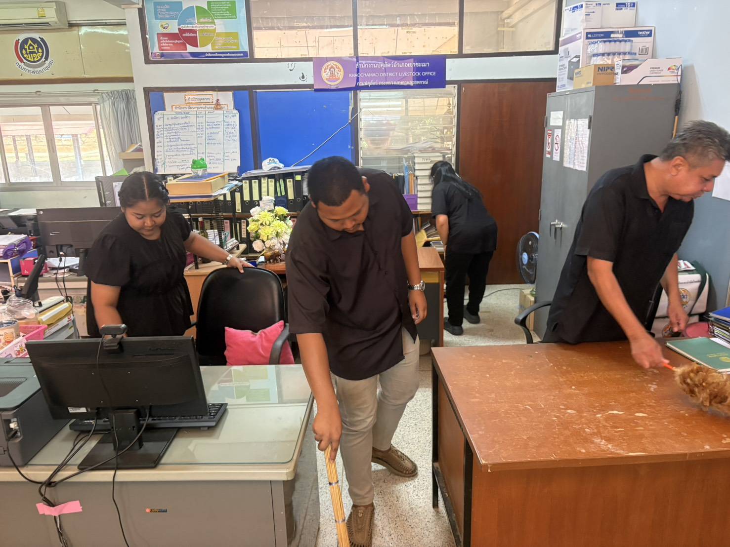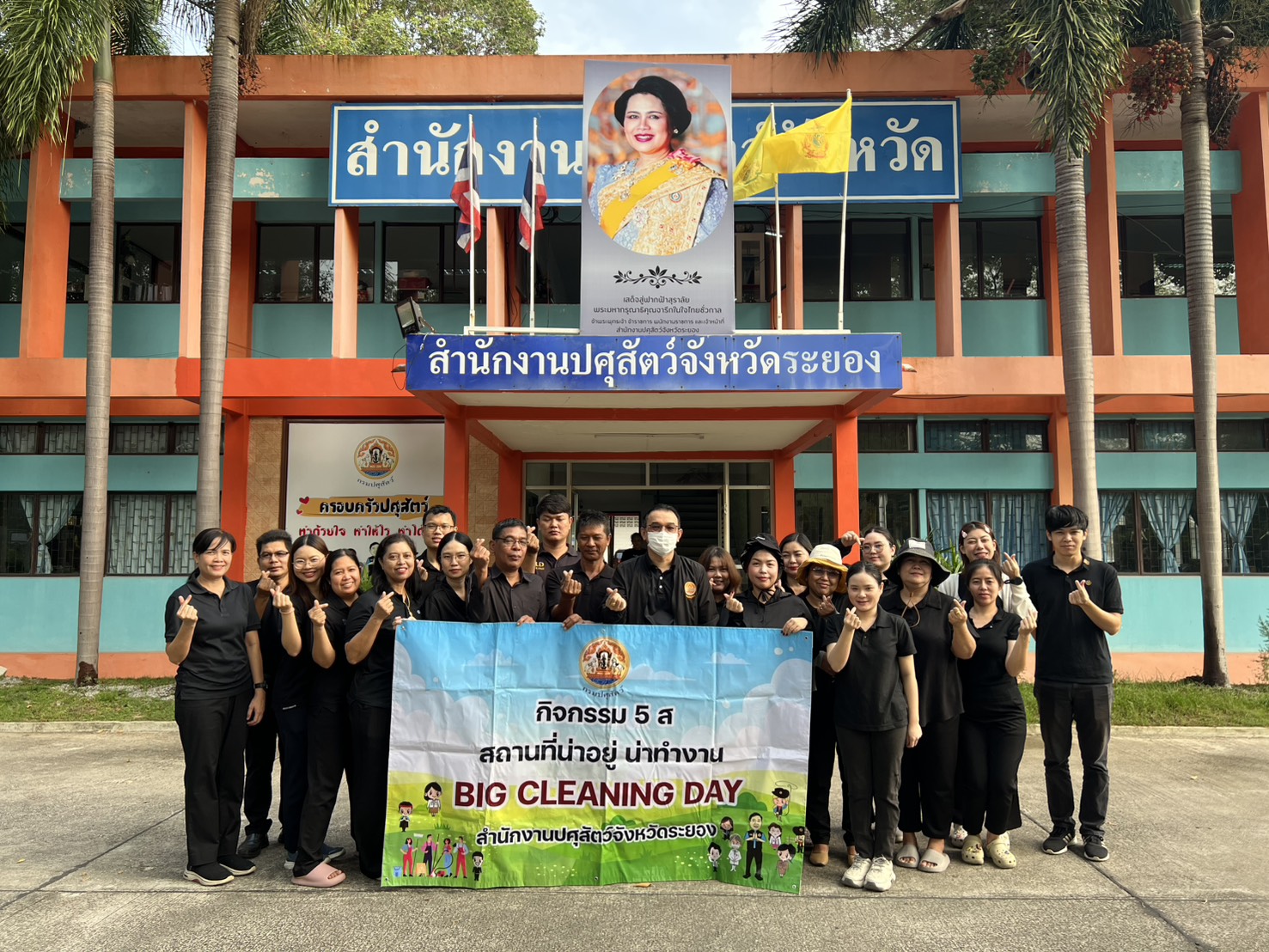 วันที่ 18 กุมภาพันธ์ 2569 เวลา 08.30 น. นายสัตวแพทย์ไทยวิวัฒน์ วรรณสุข ปศุสัตว์จังหวัดระยอง พร้อมด้วย นางสาวณัฐนันท์ ประเสริฐ หัวหน้ากลุ่มพัฒนาสุขภาพสัตว์ นางสุภาวดี สุขีถาน หัวหน้าฝ่ายบริหารทั่วไป นายพิรพัตร์ ช่วยทอง หัวหน้ากลุ่มยุทธศาสตร์และสารสนเทศการปศุสัตว์ น.สพ.อภิณัฐ มะกรวัฒนะ นายสัตวแพทย์ชำนาญการ รักษาการแทนปศุสัตว์อำเภอเมืองระยอง นายเจษฎิภัทท์ คำเบา ปศุสัตว์อำเภอบ้านฉาง และเจ้าหน้าที่สำนักงานปศุสัตว์จังหวัดระยอง ดำเนินการกิจกรรม 5 ส (Big Cleaning Day) เพื่อปรับปรุงสภาพแวดล้อมในการทำงาน ภายในและภายนอกสำนักงานปศุสัตว์จังหวัดระยอง และสำนักงานปศุสัตว์อำเภอทั้ง 8 แห่ง ณ สำนักงานปศุสัตว์จังหวัดระยอง ตำบลเนินพระ อำเภอเมืองระยอง จังหวัดระยอง