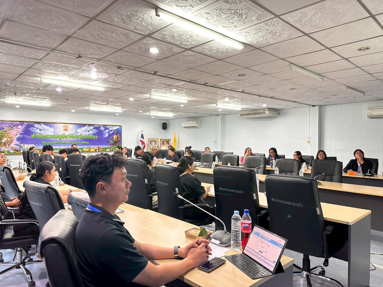 วันที่ 27 กุมภาพันธ์ 2569 เวลา 10.00 น. นายสัตวแพทย์ไทยวิวัฒน์ วรรณสุข ปศุสัตว์จังหวัดระยอง ประธานในการประชุม พร้อมด้วย หัวหน้ากลุ่มพัฒนาคุณภาพสินค้าปศุสัตว์ กลุ่มพัฒนาสุขภาพสัตว์ กลุ่มส่งเสริมและพัฒนาการปศุสัตว์ กลุ่มยุทธศาสตร์และสารสนเทศการปศุสัตว์ หัวหน้าฝ่ายบริหารงานทั่วไป ปศุสัตว์อำเภอทุกอำเภอ ข้าราชการและพนักงานราชการสำนักงานปศุสัตว์จังหวัดระยอง เข้าร่วมการประชุมข้าราชการและพนักงานราชการสำนักงานปศุสัตว์จังหวัดระยอง ครั้งที่ 2/2569 ประจำเดือนกุมภาพันธ์ 2569 เพื่อติดตามความก้าวหน้าผลการปฏิบัติงานของกลุ่ม/ฝ่าย/ปศุสัตว์อำเภอ แนวทางการขับเคลื่อนงานตามภารกิจรับผิดชอบ ระเบียบและแผนการปฏิบัติงาน การเร่งรัดเบิกจ่ายงบประมาณ ปัญหา อุปสรรค ข้อเสนอแนะ และงานตามนโยบายเร่งด่วนของกรมปศุสัตว์และจังหวัด ณ ห้องประชุมสำนักงานปศุสัตว์จังหวัดระยอง อำเภอเมืองระยอง จังหวัดระยอง