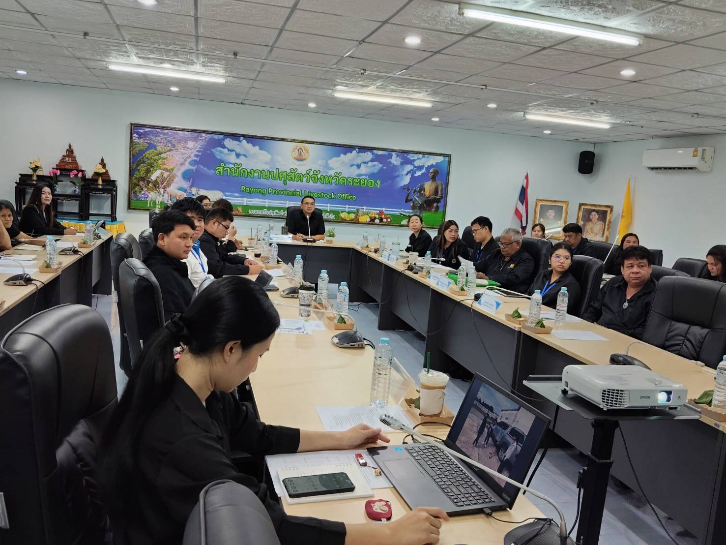 วันที่ 30 ตุลาคม 2568 เวลา 09.00 น. นายสัตวแพทย์ไทยวิวัฒน์ วรรณสุข ปศุสัตว์จังหวัดระยอง เป็นประธานการประชุมคณะกรรมการขับเคลื่อนนโยบายกรมปศุสัตว์ (DLD-C) ระดับพื้นที่จังหวัดระยอง และการประชุมข้าราชการและพนักงานราชการ ครั้งที่ 10/2568 ประจำเดือนตุลาคม 2568 โดยมีหน่วยงานคณะกรรมการร่วมประชุม ได้แก่ ศูนย์วิจัยและพัฒนาการสัตวแพทย์ภาคตะวันออก ศูนย์วิจัยและบำรุงพันธุ์สัตว์ระยอง ศูนย์วิจัยและพัฒนาอาหารสัตว์สระแก้ว ศูนย์วิจัยการผสมเทียมและเทคโนโลยีชีวภาพชลบุรี ด่านกักกันสัตว์ชลบุรี และด่านกักกันสัตว์จันทบุรี พร้อมด้วย หัวหน้ากลุ่มพัฒนาคุณภาพสินค้าปศุสัตว์ กลุ่มพัฒนาสุขภาพสัตว์ กลุ่มส่งเสริมและพัฒนาการปศุสัตว์ กลุ่มยุทธศาสตร์และสารสนเทศการปศุสัตว์ ฝ่ายบริหารงานทั่วไป และปศุสัตว์อำเภอทั้ง 8 อำเภอ โดยรับทราบนโยบายการปฏิบัติ รับฟังผลการดำเนินงาน ปัญหา อุปสรรค ข้อเสนอแนะ และแนวทางการขับเคลื่อนงานตามภารกิจรับผิดชอบ ระเบียบและแผนการปฏิบัติการ การเร่งรัดเบิกจ่ายงบประมาณ ติดตามผลการปฏิบัติงานต่างๆ การชี้แจงแนวทางการดำเนินโครงการ “คนไทย กินเนื้อโคไทย” รณรงค์ส่งเสริมการบริโภคเนื้อโคไทย เพื่อช่วยแก้ไขปัญหาราคาโคเนื้อตกต่ำ ช่วยกระตุ้นเศรษฐกิจ และให้ผู้บริโภคเข้าถึงง่ายในราคาที่เหมาะสม งานตามนโยบายเร่งด่วนของกรมปศุสัตว์และกระทรวงเกษตรและสหกรณ์ เพื่อสร้างความเข้าใจ ซักซ้อมแนวทางการดำเนินงานร่วมกัน อันจะเป็นการสนับสนุนและเพิ่มประสิทธิภาพในการปฏิบัติงานของเจ้าหน้าที่ในระดับพื้นที่ให้มากยิ่งขึ้น ผ่านระบบประชุมทางไกล Zoom Meeting และ ณ ห้องประชุมสำนักงานปศุสัตว์จังหวัดระยอง