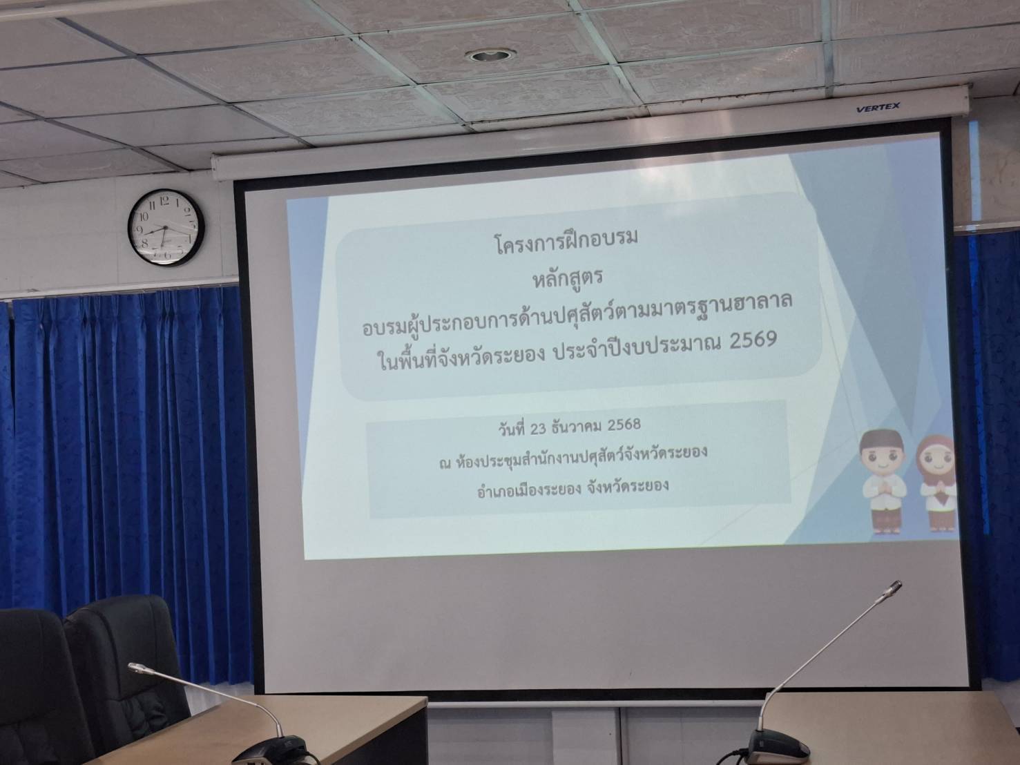 วันที่ 23 ธันวาคม 2568 เวลา 09.00 น. นายสัตวแพทย์ไทยวิวัฒน์ วรรณสุข ปศุสัตว์จังหวัดระยอง พร้อมด้วย สพ.ญ.สุภลักษณ์ ตันประยูร นายสัตวแพทย์ชำนาญการพิเศษ หัวหน้ากลุ่มพัฒนาคุณภาพสินค้าปศุสัตว์ น.สพ.อภิณัฐ มะกรวัฒนะ นายสัตวแพทย์ชำนาญการ สพ.ญ.ทิพย์สุดา พุฒซ้อน นายสัตวแพทย์ชำนาญการ และเจ้าหน้าที่กลุ่มพัฒนาคุณภาพสินค้าปศุสัตว์ จัดการฝึกอบรม หลักสูตร "อบรมผู้ประกอบการด้านปศุสัตว์ตามมาตรฐานฮาลาลในพื้นที่จังหวัดระยอง" ประจำปีงบประมาณ พ.ศ.2569 มีวัตถุประสงค์ เพื่อให้ผู้ประกอบการตระหนักถึงความสำคัญของมาตรฐานฮาลาลและทราบถึงขั้นตอนการขอรับรองมาตรฐานฮาลาล โดยมี นายสัตวแพทย์ไทยวิวัฒน์ วรรณสุข ปศุสัตว์จังหวัดระยอง เป็นประธานพิธีเปิดการฝึกอบรมฯ สพ.ญ.ทิพย์สุดา พุฒซ้อน นายสัตวแพทย์ชำนาญการ เป็นวิทยากรบรรยายให้ความรู้ ดังนี้