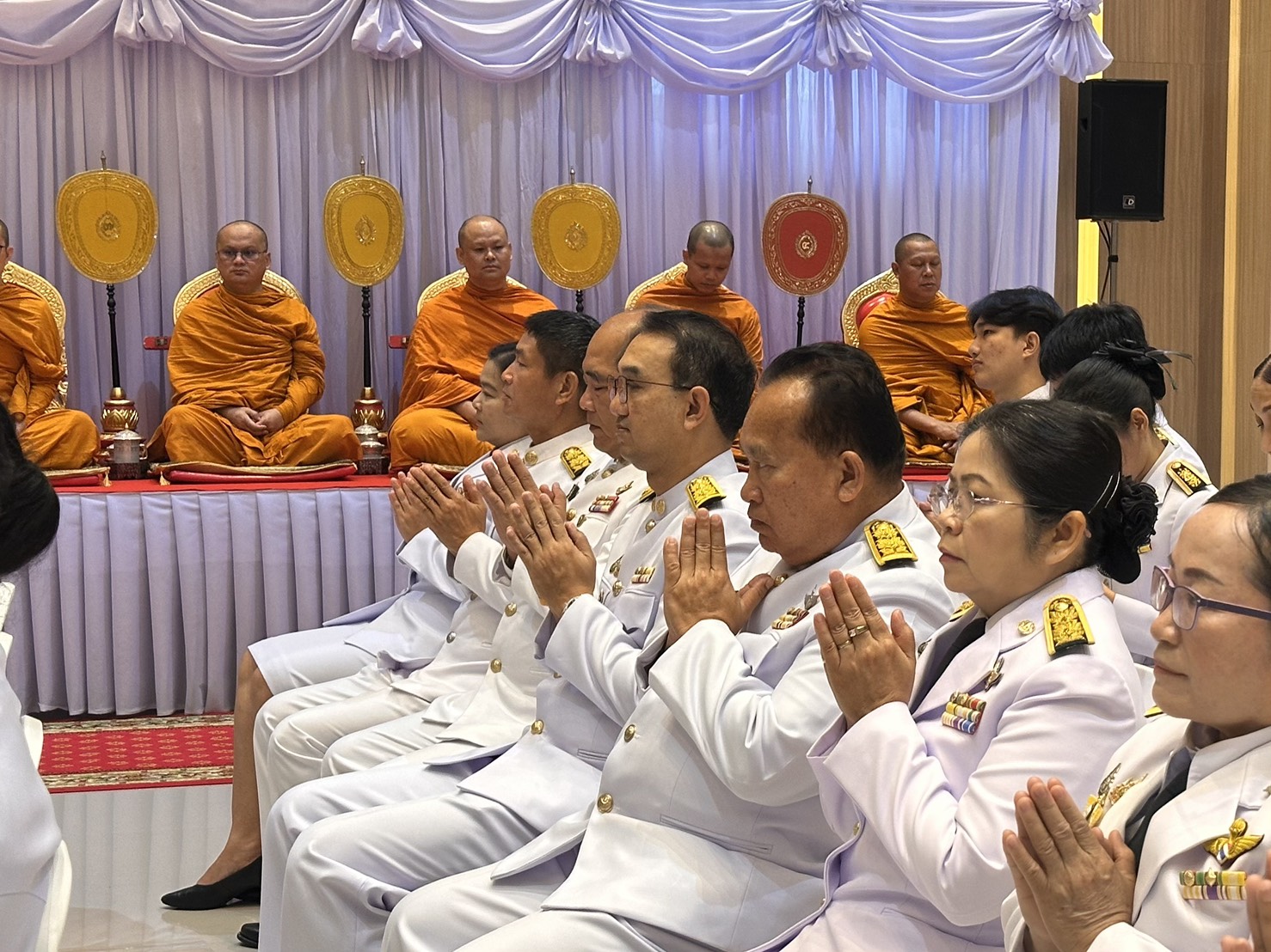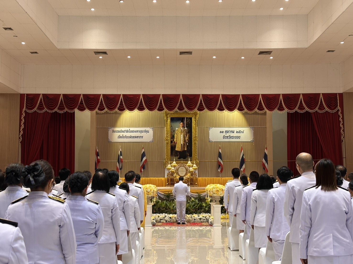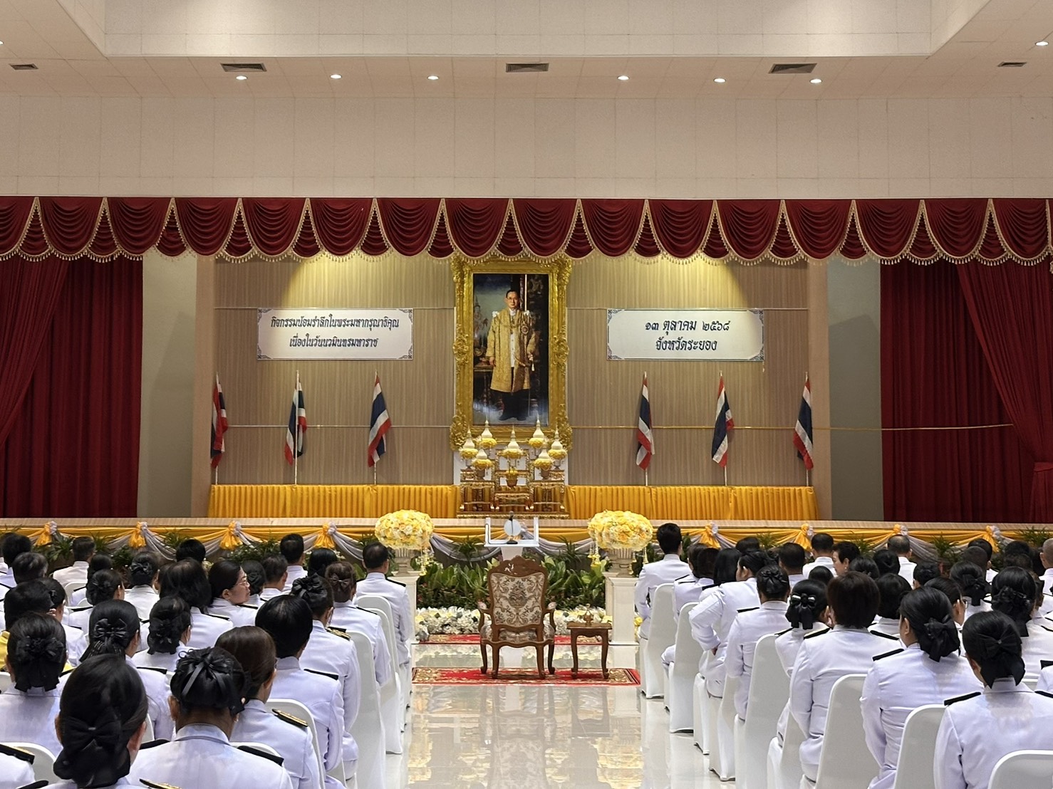 วันที่ 13 ตุลาคม 2568 เวลา 07.00 น. นายสัตวแพทย์ไทยวิวัฒน์ วรรณสุข ปศุสัตว์จังหวัดระยอง พร้อมด้วย นายสุพศิน ยงย้อย หัวหน้ากลุ่มยุทธศาสตร์และสารสนเทศการปศุสัตว์ และเจ้าหน้าที่สำนักงานปศุสัตว์จังหวัดระยอง ร่วมกิจกรรมเนื่องในวันนวมินทรมหาราช 13 ตุลาคม วันคล้ายวันสวรรคตของพระบาทสมเด็จพระบรมชนกาธิเบศร มหาภูมิพลอดุลยเดชมหาราช ในพิธีเจริญพระพุทธมนต์ พิธีทำบุญตักบาตร ถวายพระราชกุศล และวางพวงมาลา โดยมีนายภาสกร บุญญลักษม์ ผู้ว่าราชการจังหวัดระยอง เป็นประธานในพิธี ณ หอประชุมศูนย์ราชการจังหวัดระยอง อำเภอเมืองระยอง จังหวัดระยอง
