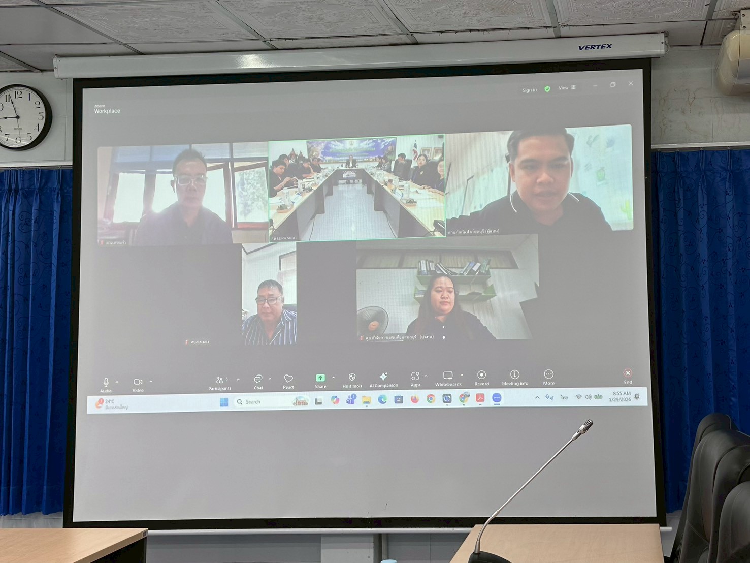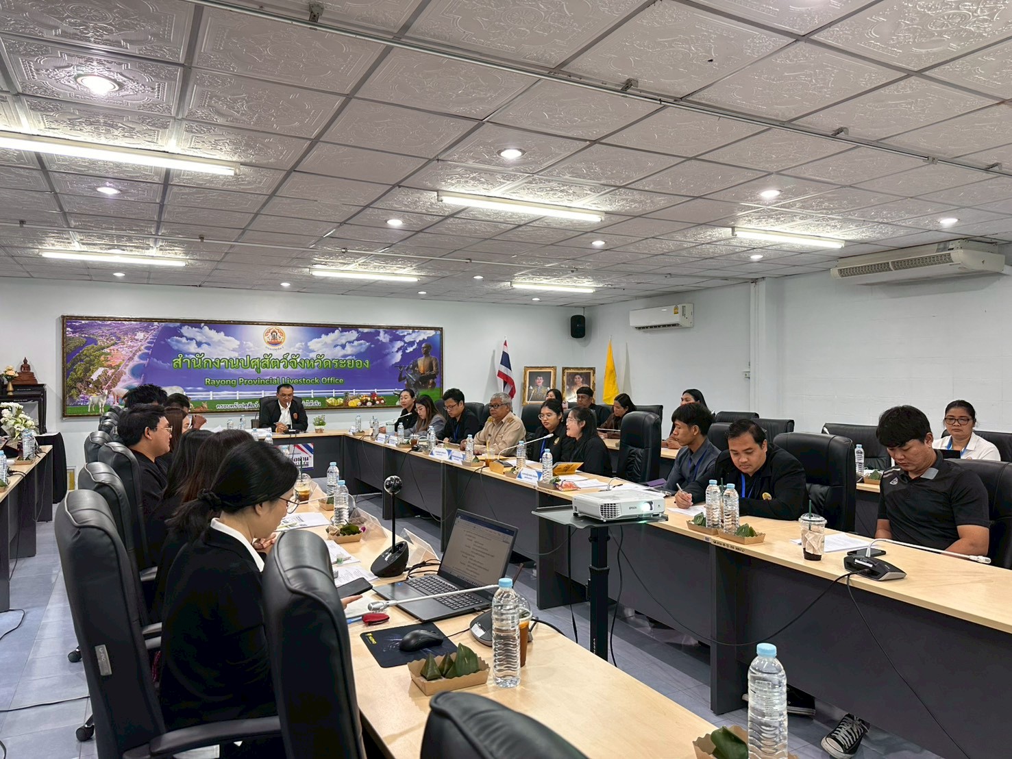 วันที่ 29 มกราคม 2569 เวลา 09.00 น. นายสัตวแพทย์ไทยวิวัฒน์ วรรณสุข ปศุสัตว์จังหวัดระยอง เป็นประธานการประชุมคณะกรรมการขับเคลื่อนนโยบายกรมปศุสัตว์ (DLD-C) ระดับพื้นที่จังหวัดระยอง และการประชุมข้าราชการและพนักงานราชการ ครั้งที่ 1/2569 ประจำเดือนมกราคม 2569 โดยมีหน่วยงานคณะกรรมการร่วมประชุม ได้แก่ ศูนย์วิจัยและพัฒนาการสัตวแพทย์ภาคตะวันออกชลบุรี ศูนย์วิจัยและบำรุงพันธุ์สัตว์ระยอง ศูนย์วิจัยและพัฒนาอาหารสัตว์สระแก้ว ศูนย์วิจัยการผสมเทียมและเทคโนโลยีชีวภาพชลบุรี ด่านกักกันสัตว์ชลบุรี และด่านกักกันสัตว์จันทบุรี พร้อมด้วย หัวหน้ากลุ่มพัฒนาคุณภาพสินค้าปศุสัตว์ กลุ่มพัฒนาสุขภาพสัตว์ กลุ่มส่งเสริมและพัฒนาการปศุสัตว์ กลุ่มยุทธศาสตร์และสารสนเทศการปศุสัตว์ ฝ่ายบริหารงานทั่วไป และปศุสัตว์อำเภอทั้ง 8 อำเภอ เพื่อรับทราบนโยบายการปฏิบัติงาน รับฟังผลการดำเนินงาน ปัญหาอุปสรรค ข้อเสนอแนะ แนวทางการขับเคลื่อนงานตามภารกิจรับผิดชอบ ระเบียบและแผนปฏิบัติ การเร่งรัดการเบิกจ่ายงบประมาณ และติดตามความก้าวหน้าผลการปฏิบัติงานของกลุ่ม/ฝ่าย/ปศุสัตว์อำเภอ รวมถึงการกำหนดแนวทางและแผนการควบคุมโรคพิษสุนัขบ้า จากกรณียืนยันผลการตรวจพบผู้เสียชีวิตด้วยโรคพิษสุนัขบ้า ในพื้นที่หมู่ 4 ตำบลน้ำคอก อำเภอเมืองระยอง จังหวัดระยอง เมื่อวันที่ 27 มกราคม 2569 โดยเน้นย้ำการประชาสัมพันธ์เครือข่ายในการเฝ้าระวังควบคุมป้องกันโรคพิษสุนัขบ้าในพื้นที่เกิดโรคและใกล้เคียง งานตามนโยบายเร่งด่วนของกรมปศุสัตว์และกระทรวงเกษตรและสหกรณ์ เพื่อสร้างความเข้าใจ ซักซ้อมแนวทางการปฏิบัติงานร่วมกัน อันจะเป็นการสนับสนุนและเพิ่มประสิทธิภาพในการปฏิบัติงานของเจ้าหน้าที่ในระดับพื้นที่ให้มากยิ่งขึ้น ในการนี้ สำนักงานปศุสัตว์จังหวัดระยอง ได้ต้อนรับข้าราชการย้ายมาดำรงตำแหน่งใหม่ จำนวน 2 ราย คือ นายพิรพัตร์ ช่วยทอง หัวหน้ากลุ่มยุทธศาสตร์และสารสนเทศการปศุสัตว์ และนางสาวเบ็ญจวรรณ อินทรสม ปศุสัตว์อำเภอเขาชะเมา ผ่านระบบการประชุมทางไกล Zoom Meeting และ ณ ห้องประชุมสำนักงานปศุสัตว์จังหวัดระยอง