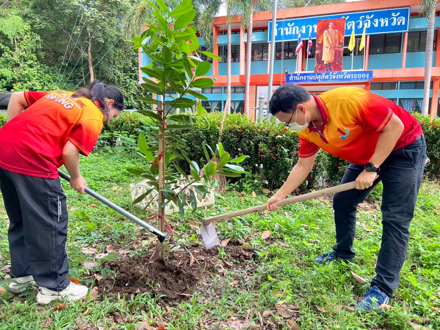 วันที่ 15 ตุลาคม 2568 เวลา 09.00 น. นายสัตวแพทย์ไทยวิวัฒน์ วรรณสุข ปศุสัตว์จังหวัดระยอง มอบหมายให้ สพ.ญ.ณัฐนันท์ ประเสริฐ หัวหน้ากลุ่มพัฒนาสุขภาพสัตว์ นางสุภาวดี สุขีถาน หัวหน้าฝ่ายบริหารทั่วไป นางสาวรักษิณา บ้วนกียาพันธุ์ หัวหน้ากลุ่มส่งเสริมและพัฒนาการปศุสัตว์ พร้อมด้วยข้าราชการ พนักงานราชการ ลูกจ้างประจำ และจ้างเหมาบริการ ดำเนินการกิจกรรมวันรักต้นไม้ประจำปีของชาติ พ.ศ. 2568 และกิจกรรม 5 ส (Big Cleaning Day) เพื่อปรับปรุงสภาพแวดล้อมในการทำงาน ภายในสำนักงานปศุสัตว์จังหวัดระยอง และสำนักงานปศุสัตว์อำเภอทั้ง 8 แห่ง ณ สำนักงานปศุสัตว์จังหวัดระยอง อำเภอเมืองระยอง จังหวัดระยอง