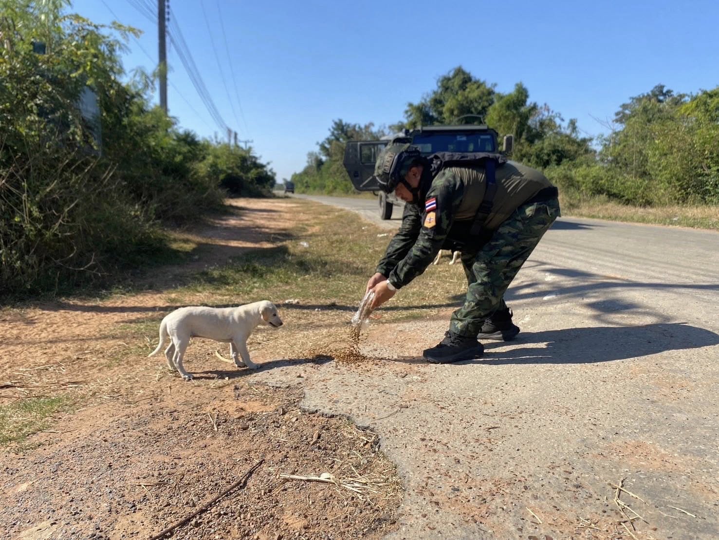 วันที่ 20 ธันวาคม 2568 นายสัตวแพทย์ประหยัด เข่งค้า ปศุสัตว์จังหวัดสระแก้ว มอบหมายให้ สำนักงานปศุสัตว์อำเภอตาพระยา ดำเนินการส่งมอบเสบียงอาหารสัตว์ (อาหารสุนัขและแมว) เพื่อบรรเทาความเดือดร้อนของสัตว์เลี้ยงที่ได้รับผลกระทบ จากสถานการณ์ความไม่สงบตามแนวชายแดนไทย–กัมพูชา กรณีเจ้าของสัตว์เลี้ยงจำเป็นต้องอพยพออกนอกพื้นที่ ในการนี้ ได้ส่งมอบอาหารสุนัขและแมว จำนวน 40 กิโลกรัม ให้แก่ หน่วยเฉพาะกิจ กองกำลังบูรพา เพื่อดำเนินการแจกจ่ายแก่สัตว์เลี้ยงที่ได้รับผลกระทบ ในพื้นที่ บ้านคลองแผง หมู่ที่ 10 ตำบลทัพเสด็จ อำเภอตาพระยา จังหวัดสระแก้ว ข้อมูลการช่วยเหลือ เจ้าของสัตว์เลี้ยง จำนวน 39 ราย สุนัข จำนวน 136 ตัว และ แมว จำนวน 85 ตัว